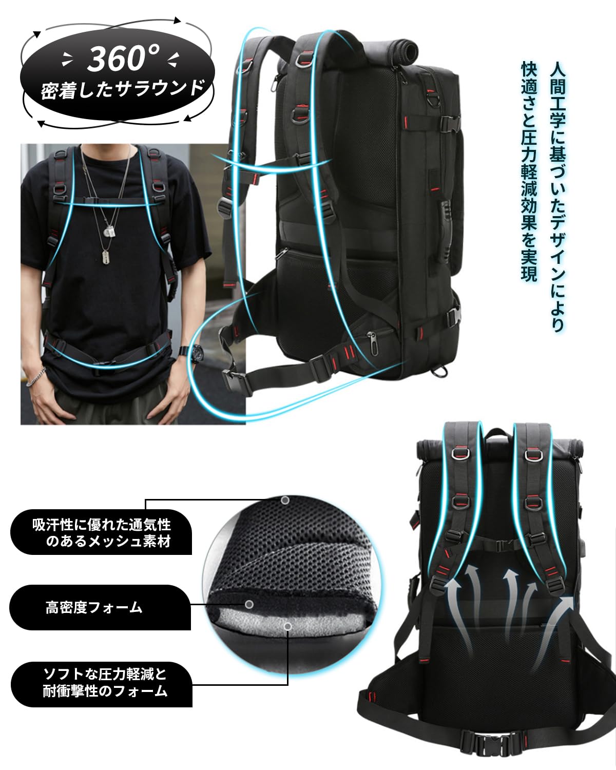 [OFAMOUS] リュック バックパック メンズ レディース リュックサック 大容量 防水 軽量 通勤 通学 旅行 カジュアル おしゃれ 男女兼用(モデル2-ブラック)