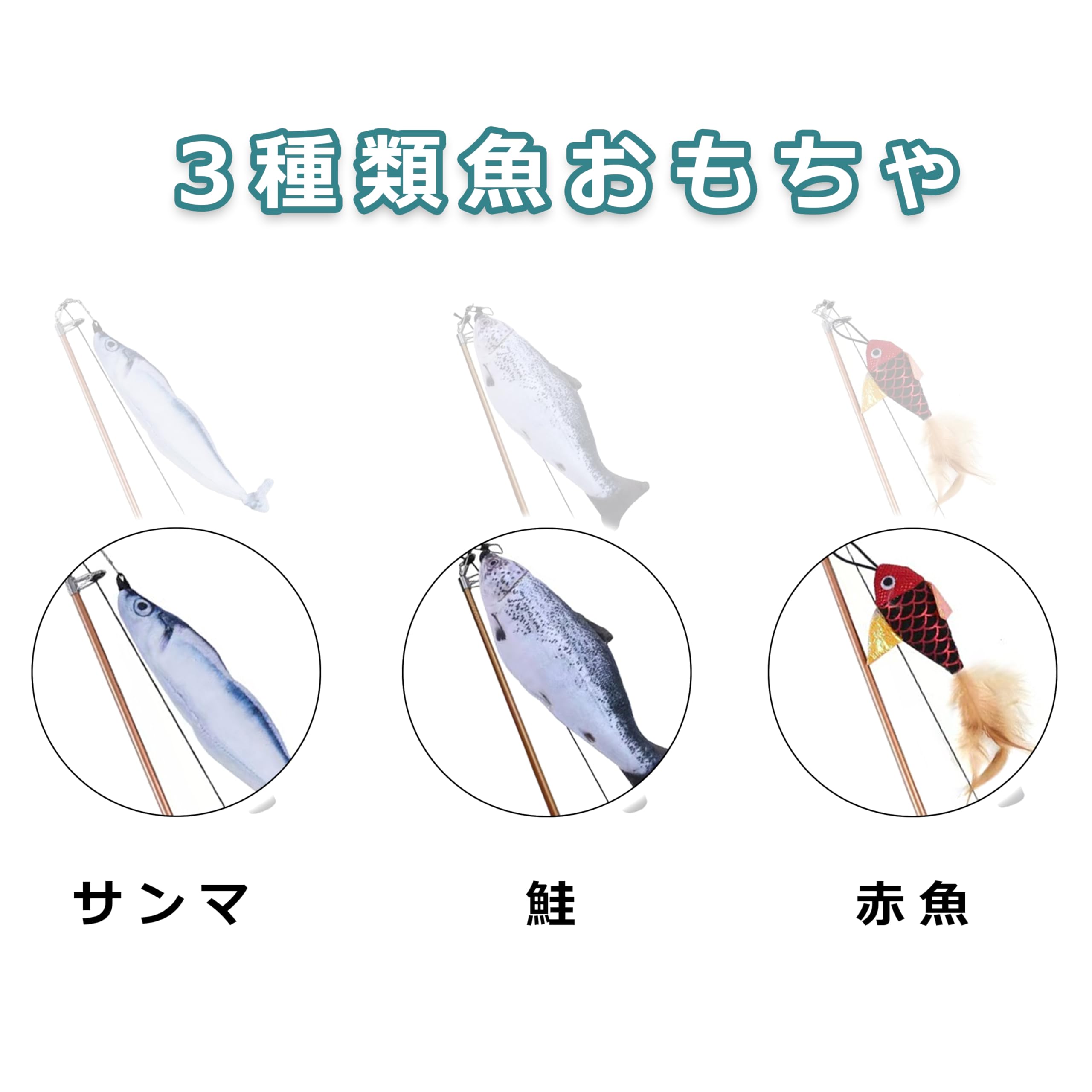猫 おもちゃ ねこじゃらし じゃらし猫 釣り竿付き 伸縮できる釣り竿 伸縮式 リアルな魚の形 人気ペット玩具 遊び道具 子猫にも安心 超軽量 ソフト 運動不足 ストレス解消 興味喚起 飽きない インタラクティブ 室内ペット用 にゃん ネコ 子猫 ペット 猫用 ねこ (鮭)