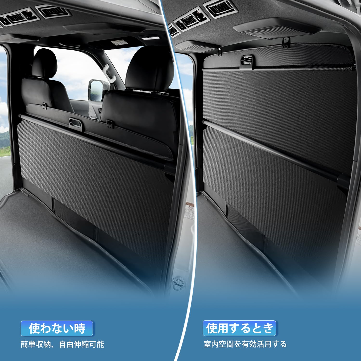 Virauto トヨタ ランドクルーザー250 トノカバー 7人乗り ランクル 250系 ロールシェード プライバシー保護 ラゲッジ収納 Land Cruiser 250系 2024年4月~現行 車種専用設計 耐高温 荷室整理 断熱 遮光 PVCキャンバス 撥水性 盗難防止 取付簡単 ドレスアップ 内装パーツ 1PCS (カーボン調, ランドクルーザー250 7人乗り)