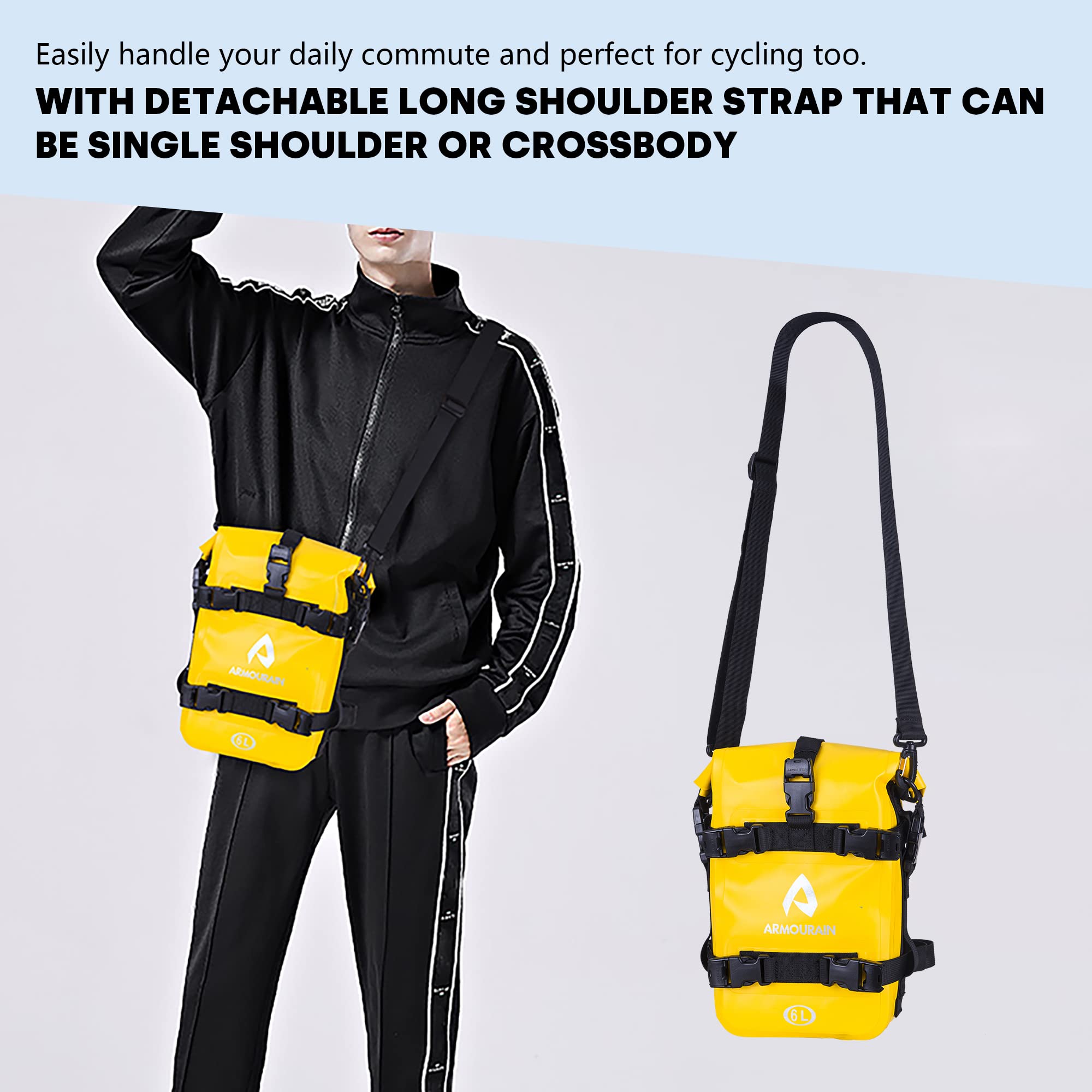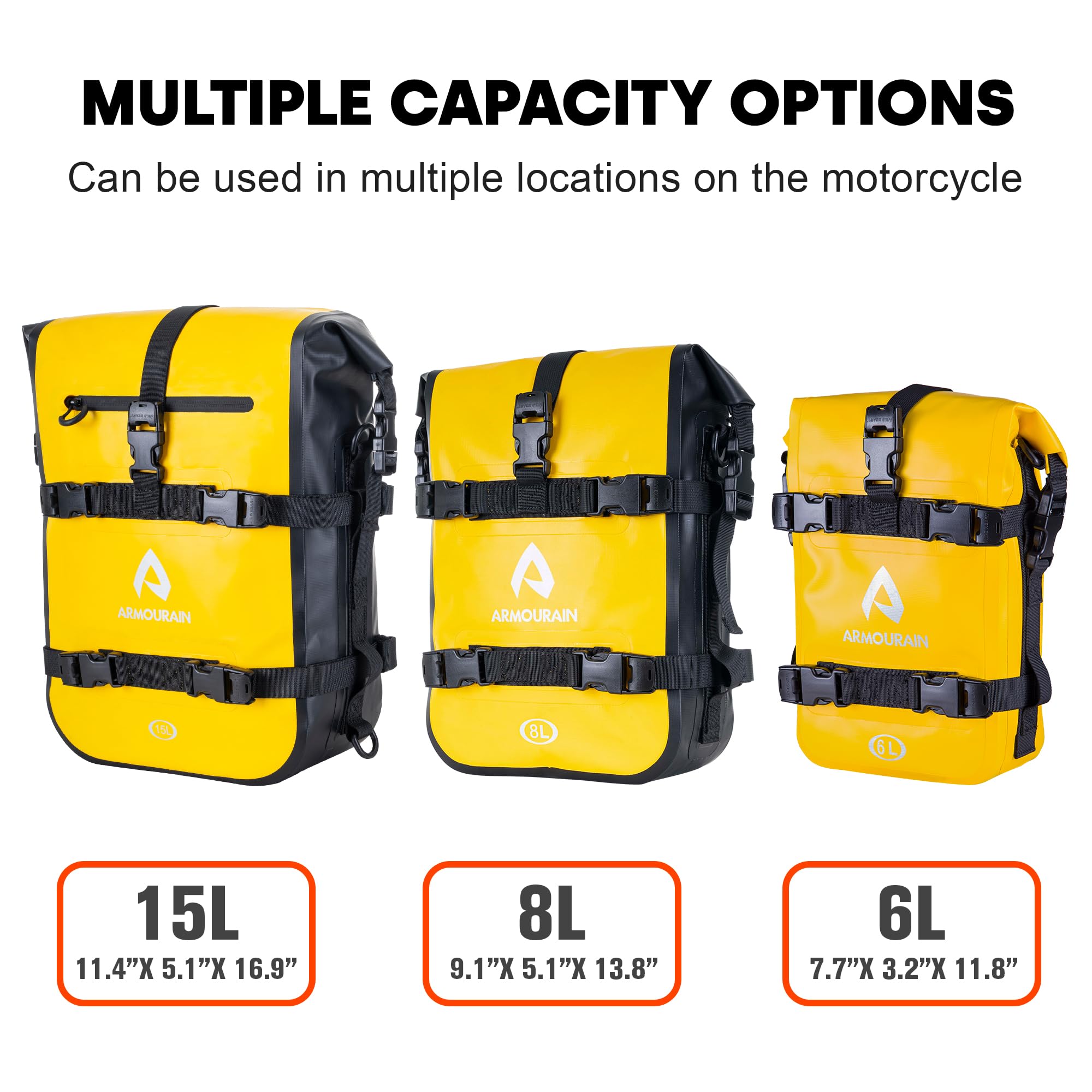 ARMOURAIN バイクシートバッグ防水 15L バイク サイドバッグバイク カバンドライバッグバイク ツールバッグガードバーバッグ (PVC イエロー, 15L)