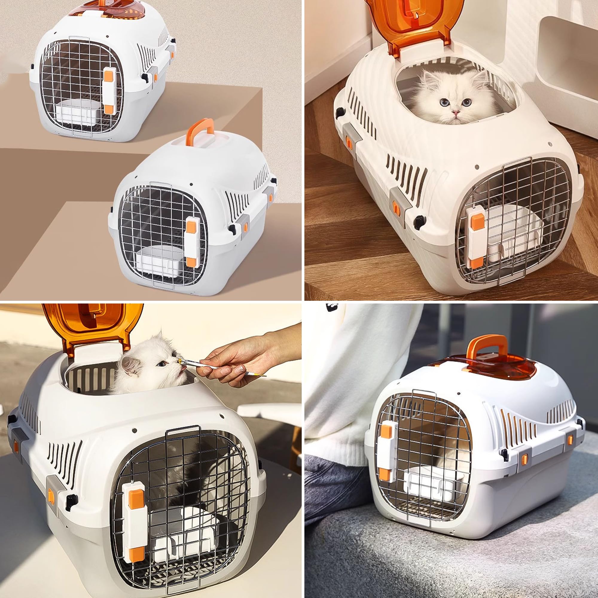Pantress 猫 犬用 ペットキャリー ハードタイプ 天窓付き キャリーケース 避難グッズ 災害対策 軽量設計 車/新幹線/飛行機の移動に 静音設計でペットが落ち着く 滑り止めハンドル付き 可愛い アウトドア (窓なしブラック)