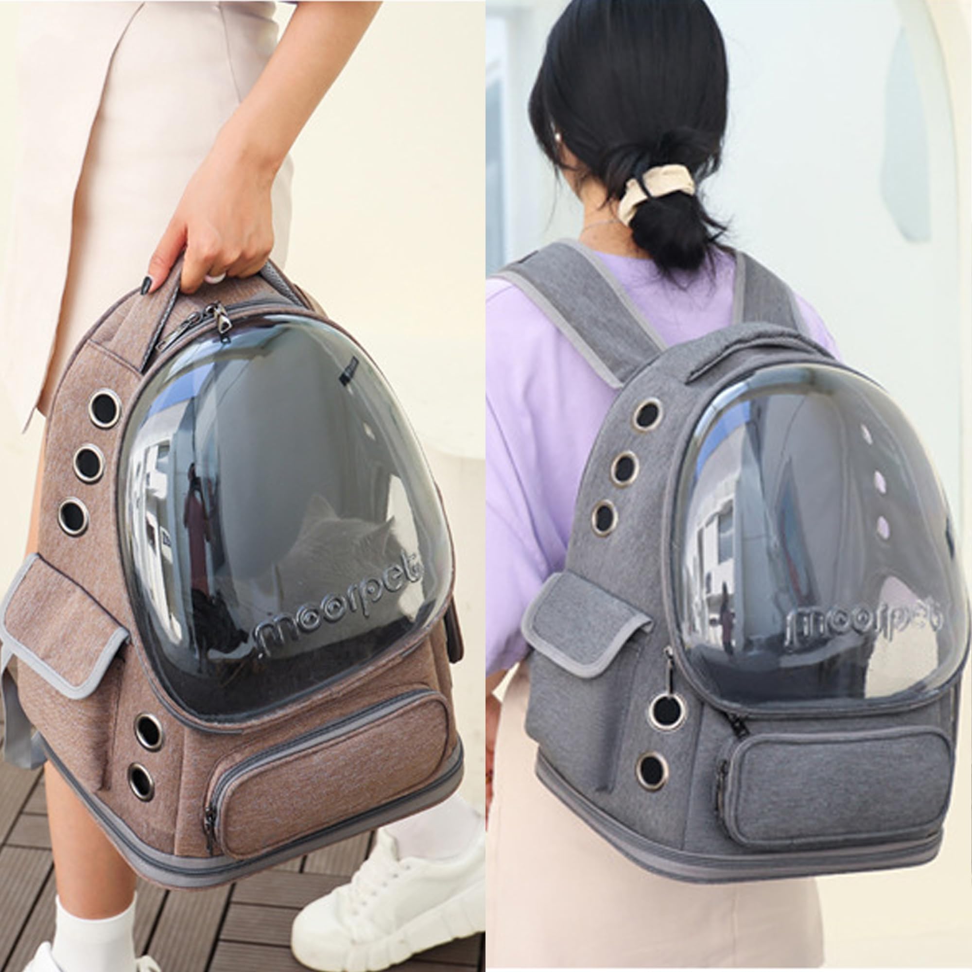 Okiki ペットキャリーリュック バッグ 拡張可能 犬 猫 うさぎ キャリーバッグ ハウス型 旅行 通院 お出かけ 防災避難 猫 小型犬 リュック 折りたたみ 大容量 通気性 宇宙船 【2種類の窓・カーテン付き】猫バッグ