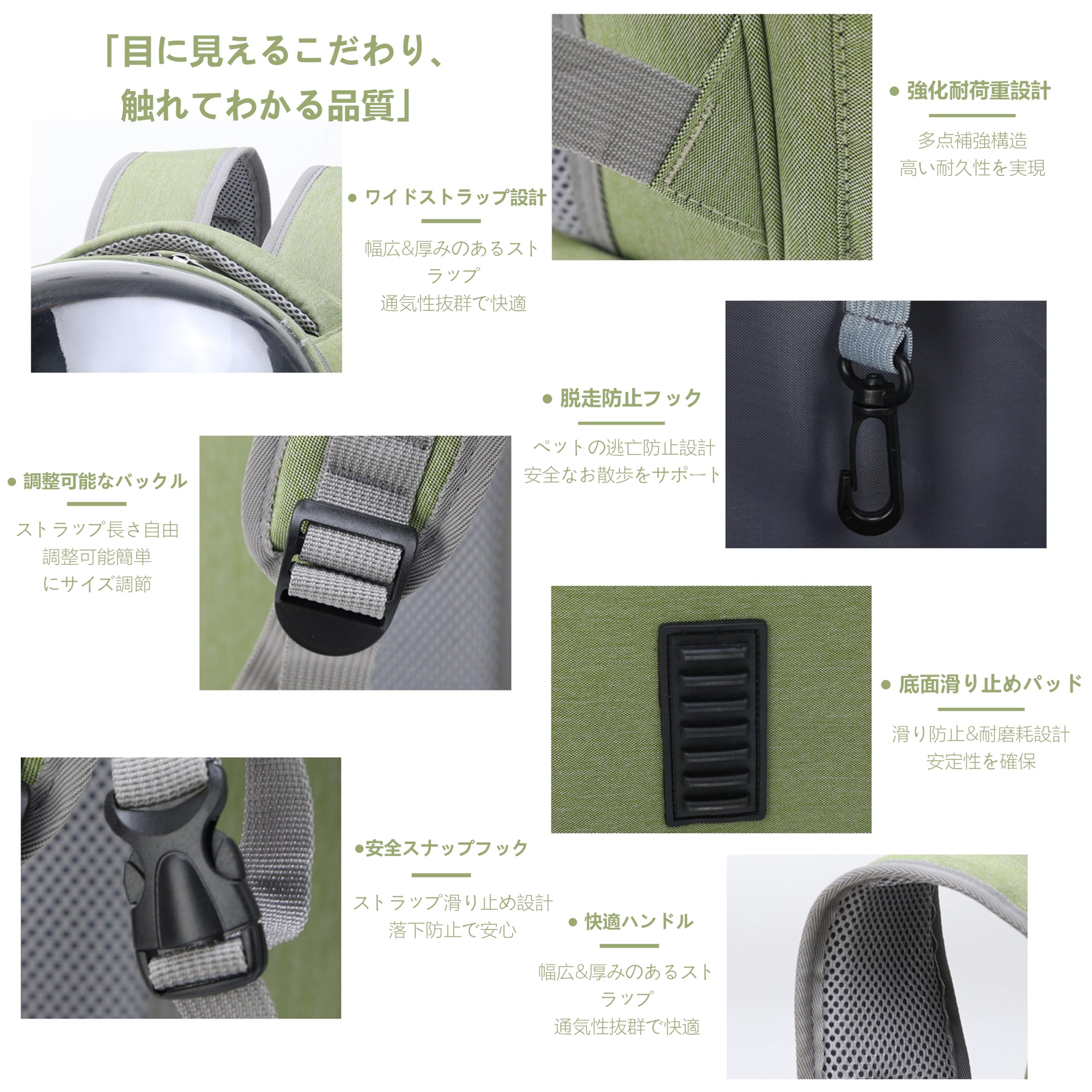 商品の説明Pantressの宇宙船デザインペットキャリーは、愛するペットとの移動を快適にする革新的なリュックです。透明なハードシェルの視窗により、ペットは周囲を見渡すことができ、飼い主も常にペットの様子を確認できます。通気性を重視した設計で、複数の通気孔を配置し、ペットの快適性を確保。3WAY設計により、リュックとしての背負い方に加え、様々な持ち運び方が可能です。車での移動、病院への通院、旅行など、様々なシーンで活躍。脱走防止機能付きで安全性も確保されています。オリーブグリーンのスタイリッシュなデザインで、小型犬や猫に最適なサイズ。緊急時の避難用としても役立つ実用的なペットキャリーです。メッシュポケット付きで小物の収納も便利です。使用方法無し