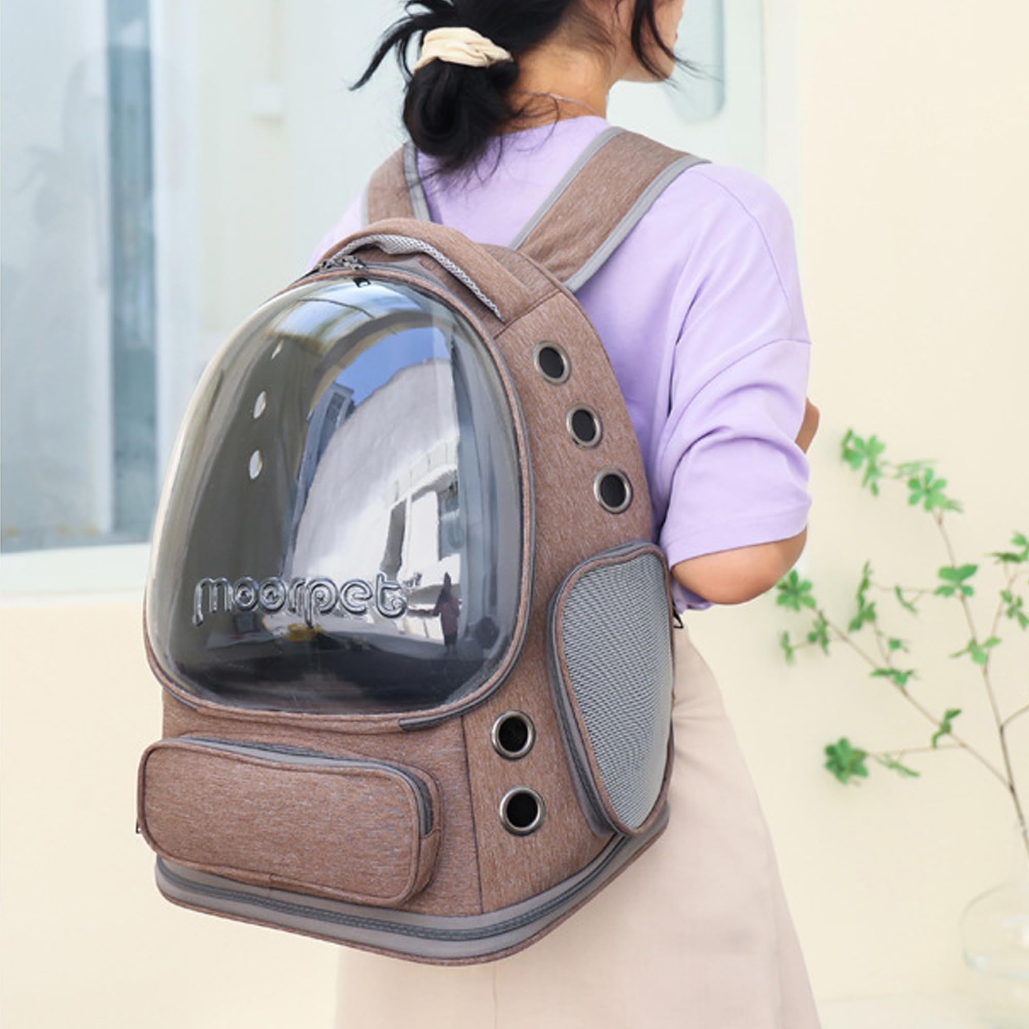 Pantress 猫・小型犬用 キャリーリュック 透明ハードタイプ 3WAY多機能キャリーバッグ 避難グッズ ペットバッグ 通気性 ペットリュック 宇宙船デザイン 車移動/病院/旅行対応 脱走防止 (カーキ)