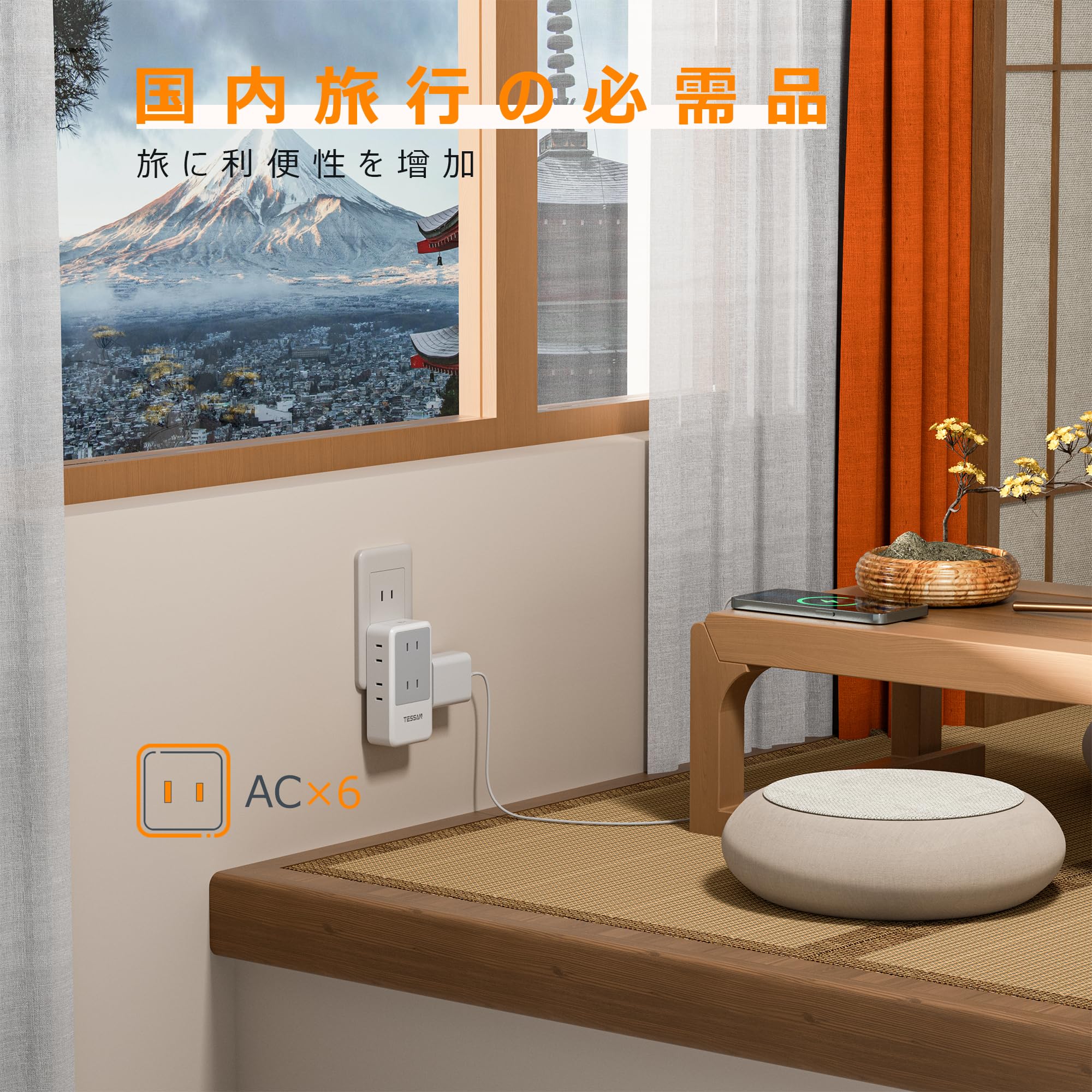 電源タップ usb コンセント 延長コード 2m たこあしコンセント TESSAN テーブルタップ タコ足配線 OAタップ マルチタップ 6個AC差込口 3つUSB-Aポート 180°スイングプラグ 一括スイッチ付き 壁掛け/卓上に