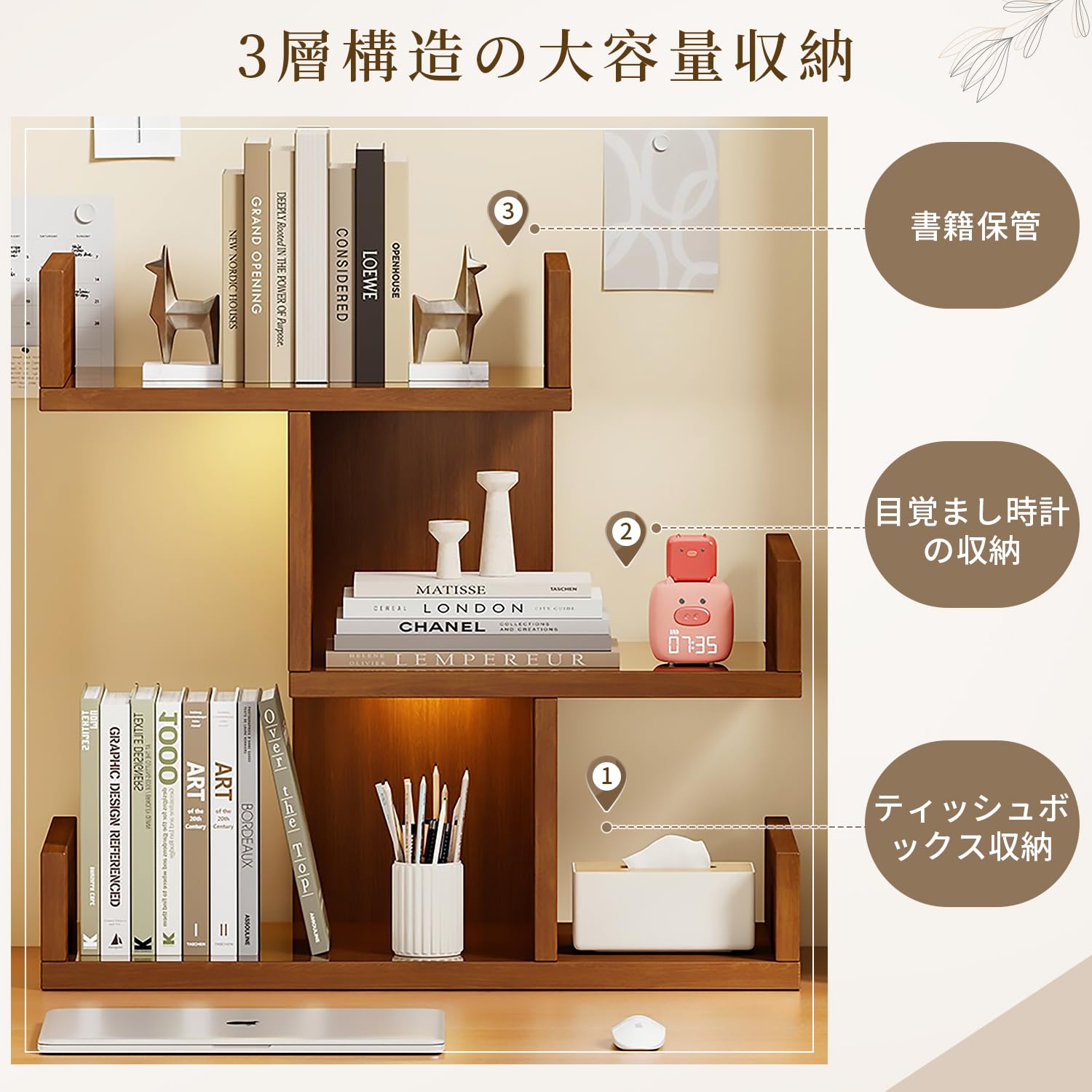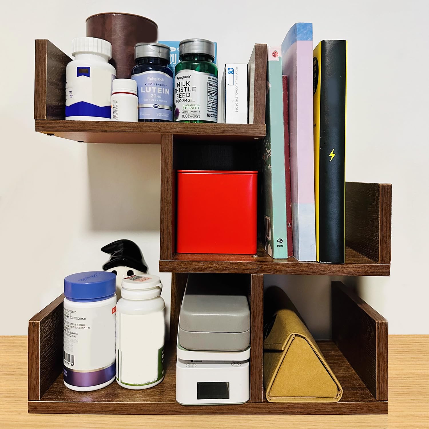 Vinnatsuデスク上置き棚 卓上ラック小さい棚 デスク上収納 本棚 三段 卓上棚 整理棚 机上ラック文房具収納 本立て 飾り棚 ブックシェルフ 収納ラック 書棚 幅40×奥行18×高さ40cm組み立て式 (オーク色)