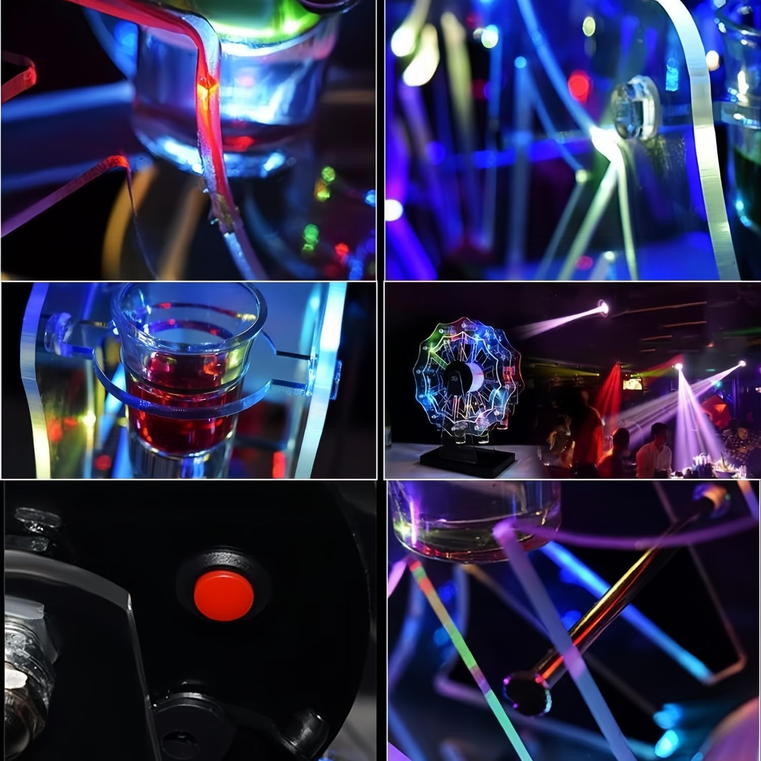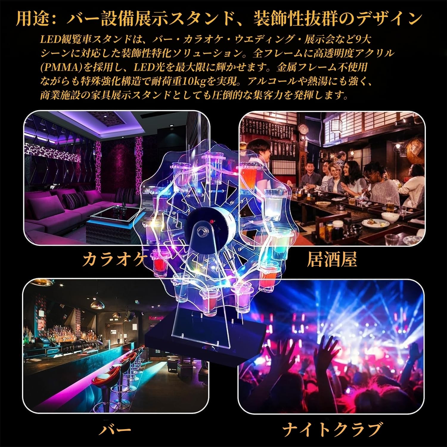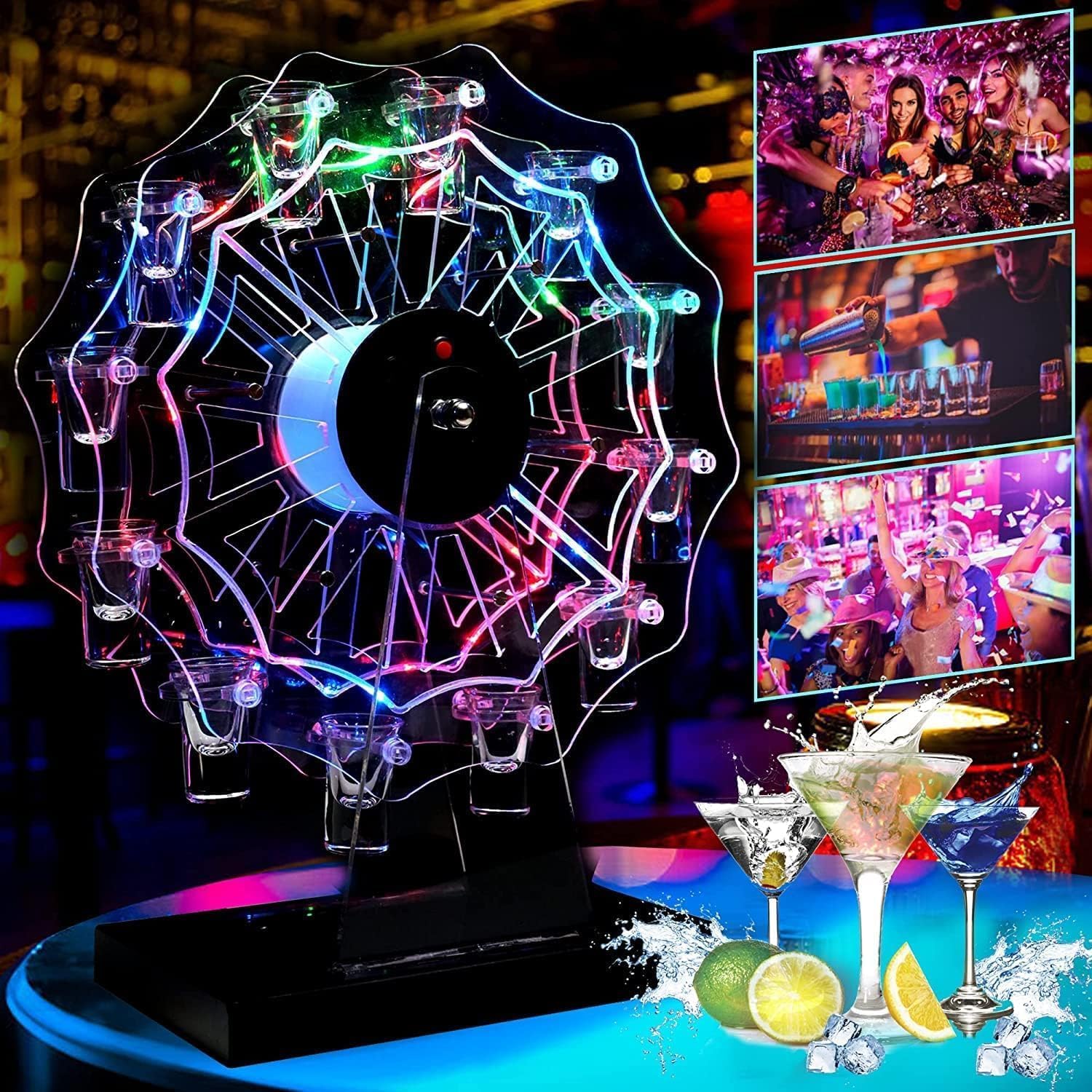 WoRefCra テキーラ観覧車 LED酒ボトルの表示棚 酒グラススタンド 25mlグラス12個付き 充電式 自動カラーチェンジ バー パーティー 忘年会 誕生日 クリスマス 贈り物 卓上自立型 USBコードレス KTV/ナイトクラブ/居酒屋対応 (ワイングラスは付属しません)