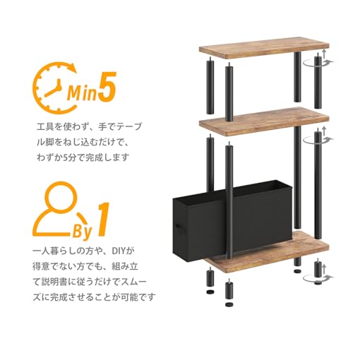 YeTom サイドテーブル キャスター付き コの字型ベッド サイドテーブル ソファサイドテーブル リビングサイドテーブル 可移動ナイトテーブル 層板は調節可能 幅48×奥行30×高さ60cm(キャスター約5CM) ビンテージ