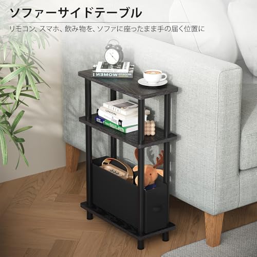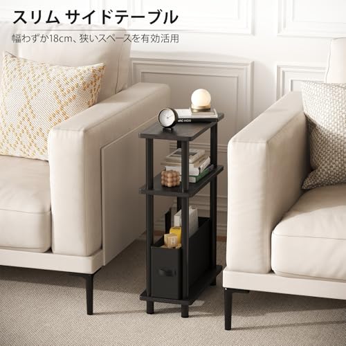 APICIZON サイドテーブル スリム ナイトテーブル 布製引き出し付き ミニテーブル 木目調 収納棚付き ベッドサイド ソファサイド ラック おしゃれ 小さい ベッド横 カフェテーブル(40cm*18cm*62cm、ブラック)