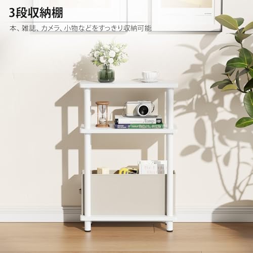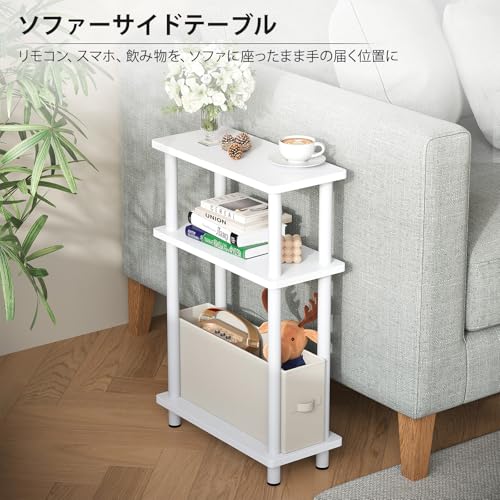 APICIZON サイドテーブル スリム ナイトテーブル 布製引き出し付き ミニテーブル 木目調 収納棚付き ベッドサイド ソファサイド ラック おしゃれ 小さい ベッド横 カフェテーブル (40cm*18cm*62cm、ホワイト)