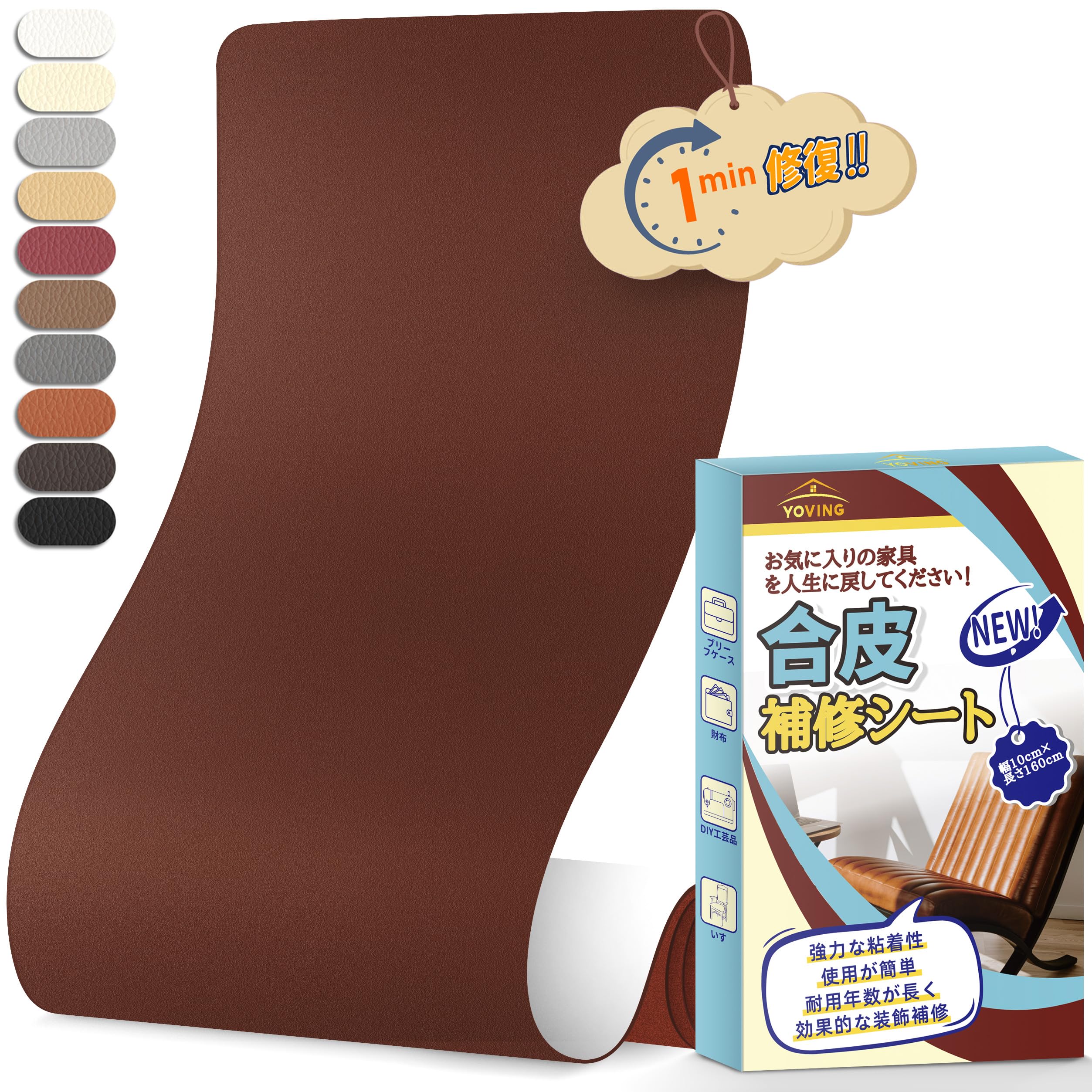 合皮補修シート大判 60cm×150cm ソファー補修テープ 粘着皮革補修テープ 自動車用シート、ソファ、ジャケット、ソファ、ハンドバッグ 皮革補修剤 レザーリペアキット ブラウン