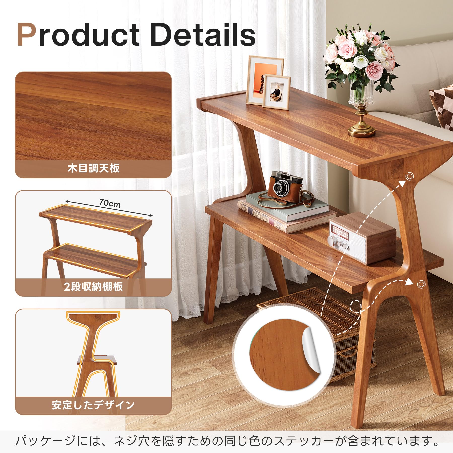 Tribesigns サイドテーブル ベッド横テーブル ソファテーブル ナートテーブル 天然木 木製 2段収納付き 幅70×奥行30×高さ67cm