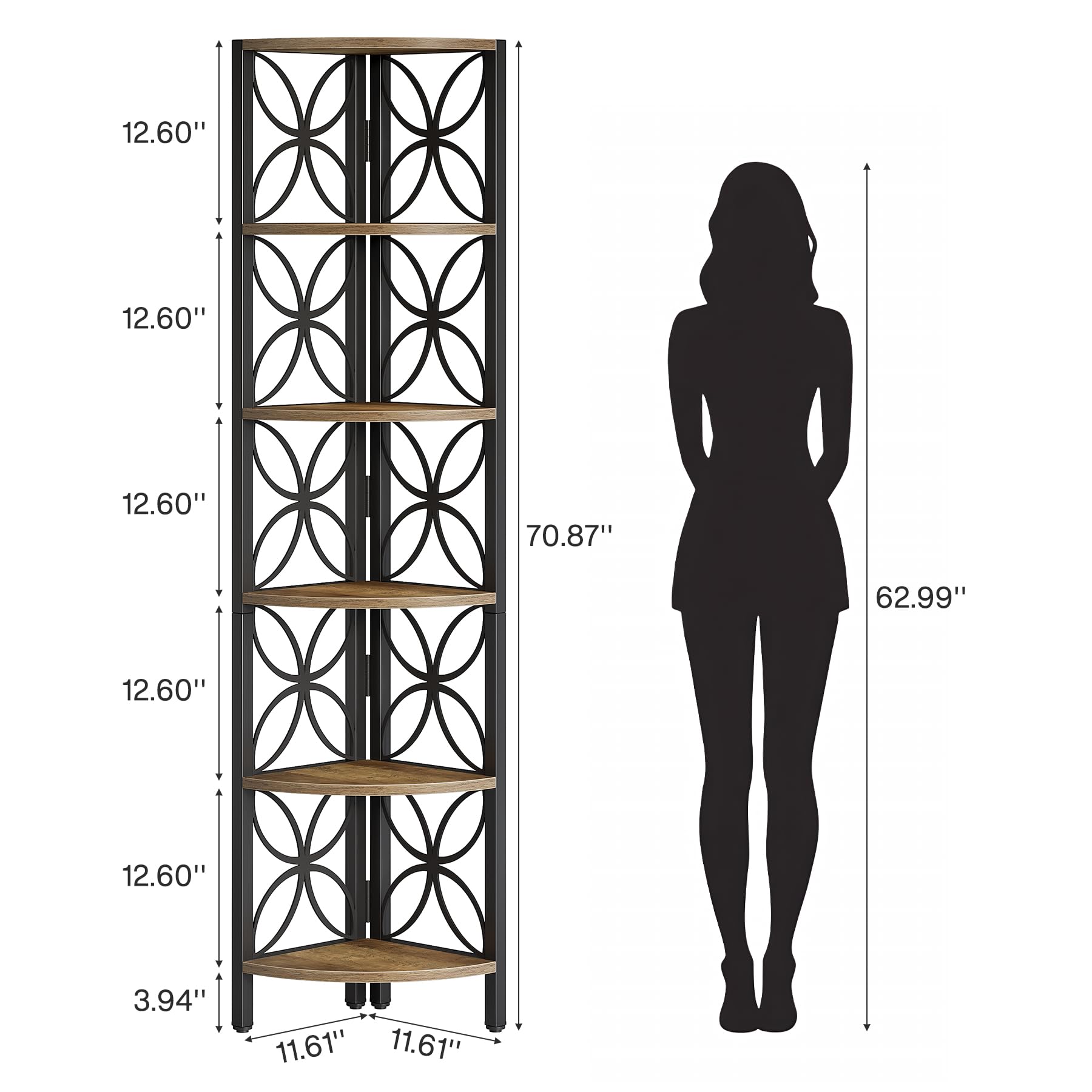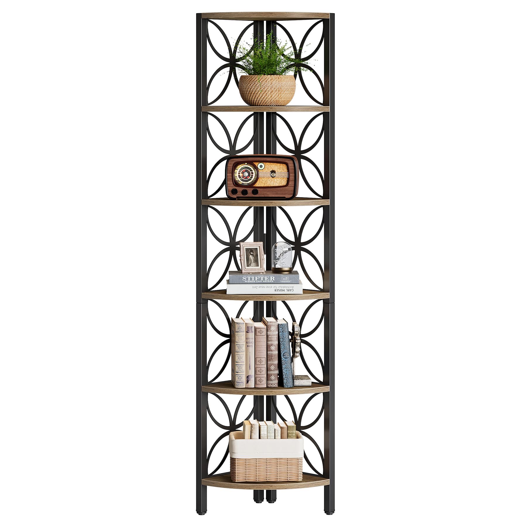 MAHANCRIS 回転式本棚 5段 独立式コーナー ブックシェルフ 大容量360°回転ディスプレイラック 囲い付きインダストリアルスタイル収納ラック リビング・寝室・書斎・ホームオフィス対応 ヴィンテージブラウン 高さ159cm BKHR1601