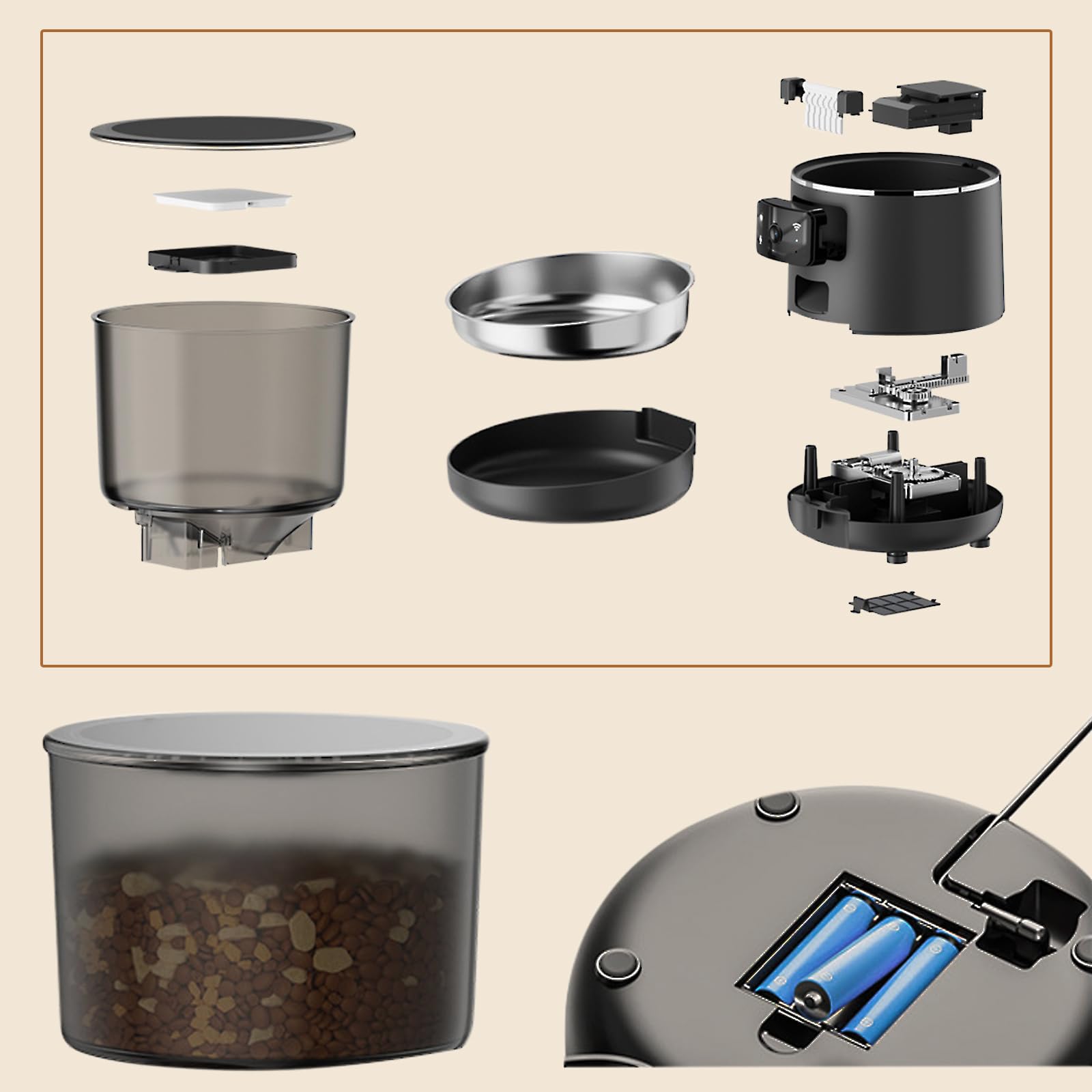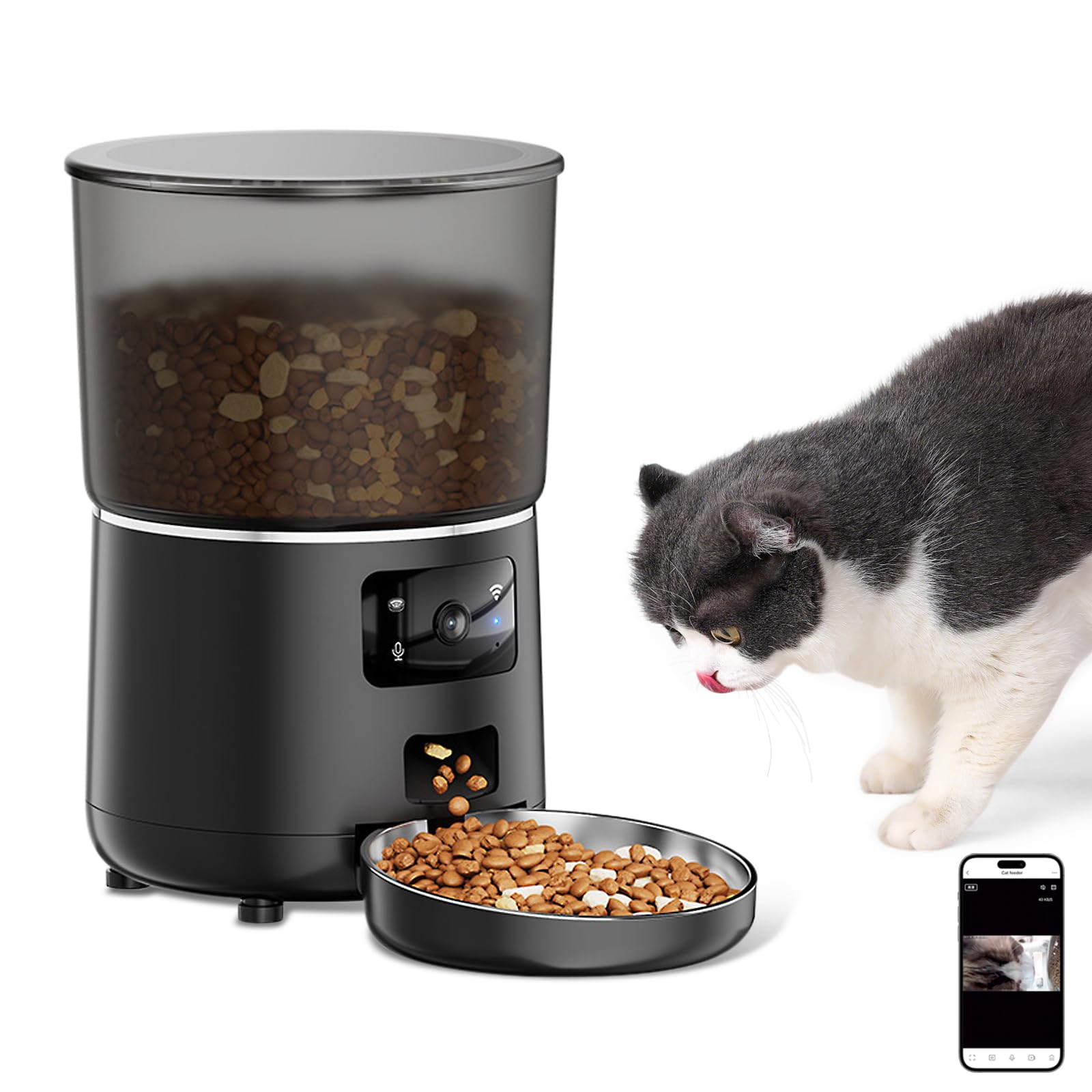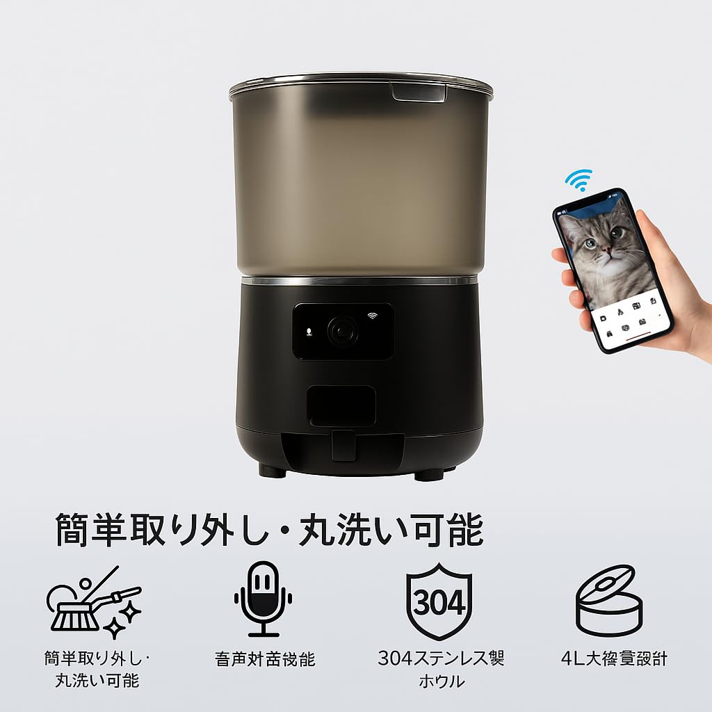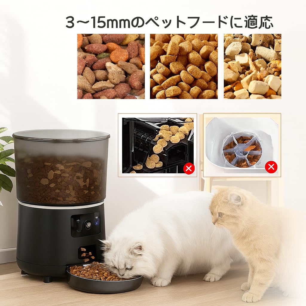 HoneyGuaridan 自動給餌器 猫 犬 小動物 2匹用 多頭飼い WiFi対応(5G/2.4G)スマホ連携 遠隔給餌 iOS Android対応 10秒録音 1日6食 定時定量 3.5L 大容量 タイマー対応 2WAY給電 停電対策 取り外し可能 乾燥剤付き 洗える ケージ取り付け 手動給餌 お手入れ簡単 日本語説明書 ブラック