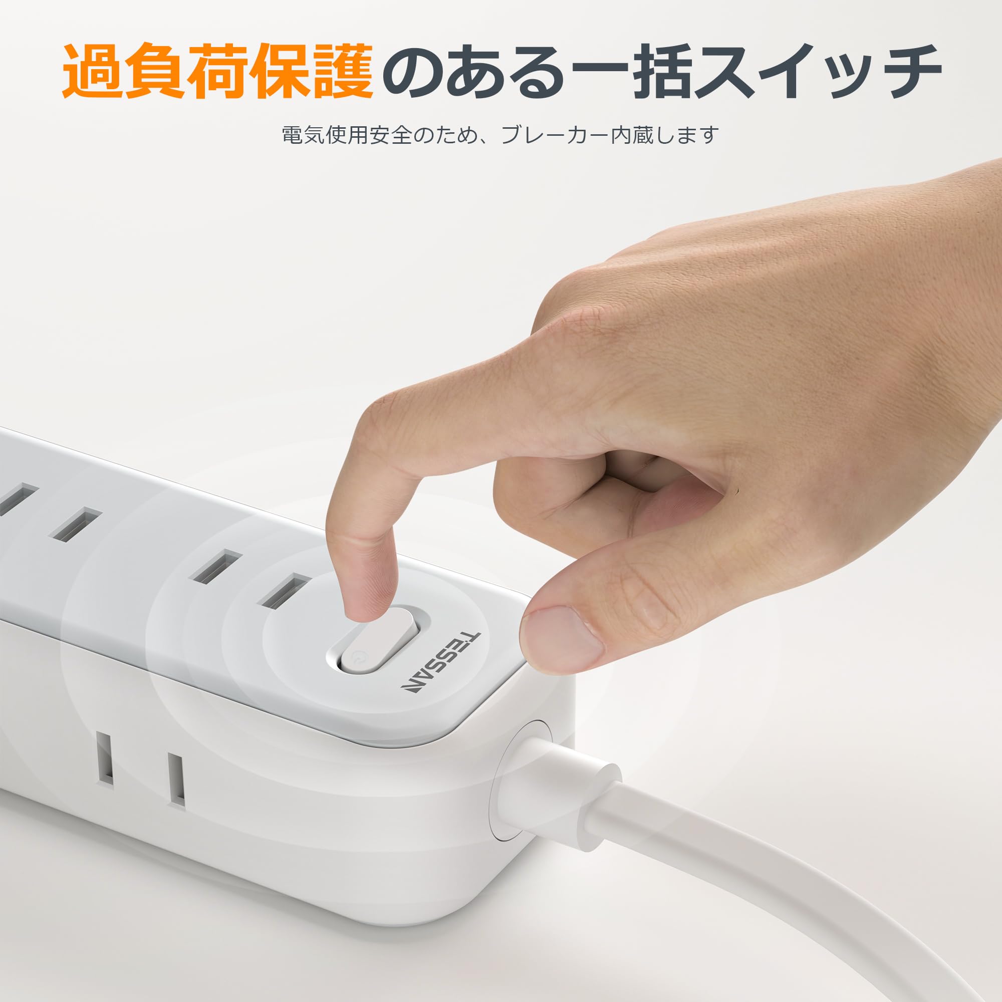 usbコンセント 4個AC口 3USBポート 延長コード 1.5m TESSAN usb電源タップ oaタップ マルチタップ テーブルタップ 充電タップ