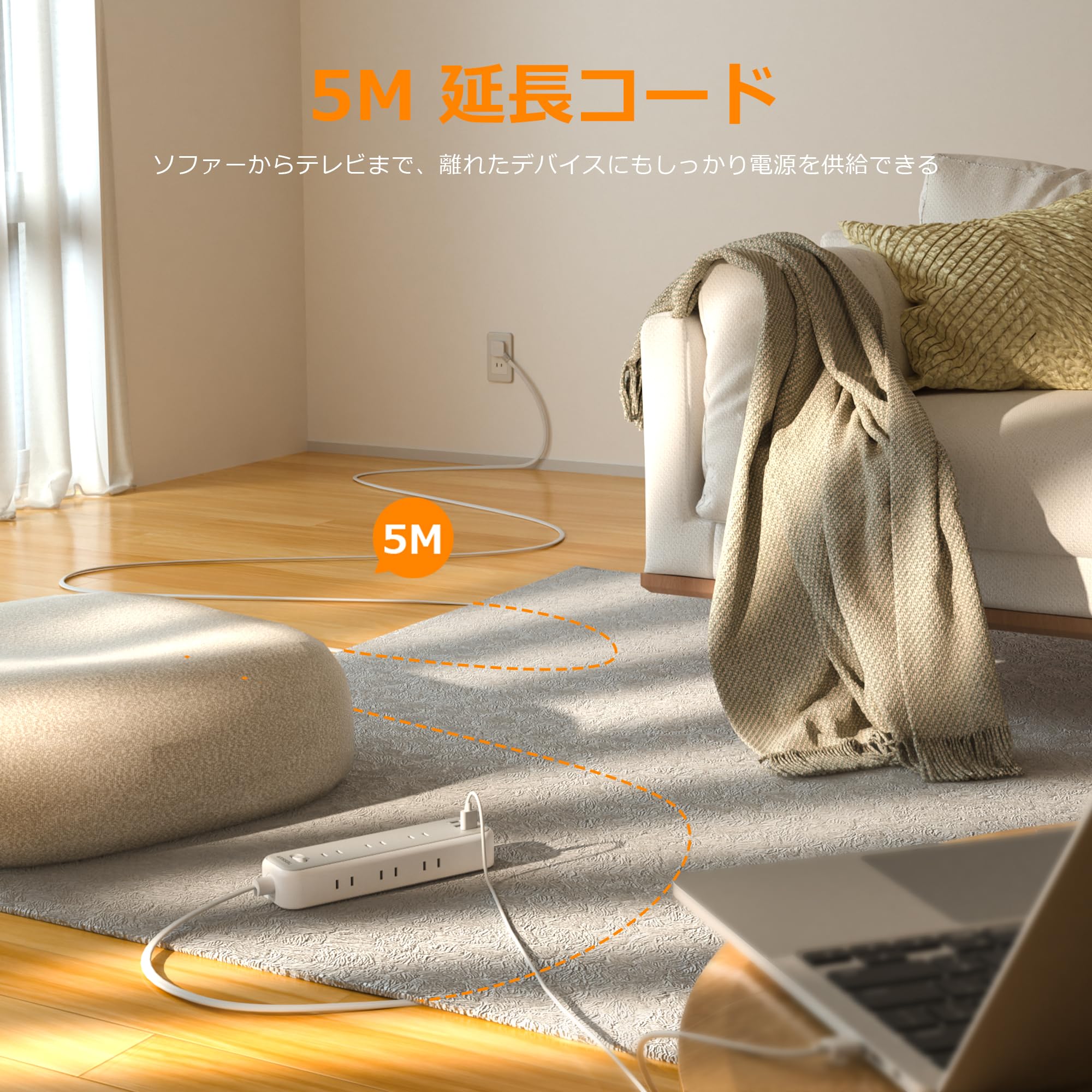 延長コード 5m 電源タップ 薄型プラグ usb たこあしコンセント テーブルタップ TESSAN 9個AC口 2個type-Aポート 1個USB-Cポート長い 電源コード OA タコ足配線 マルチ 一括スイッチ付き 壁掛け 卓上