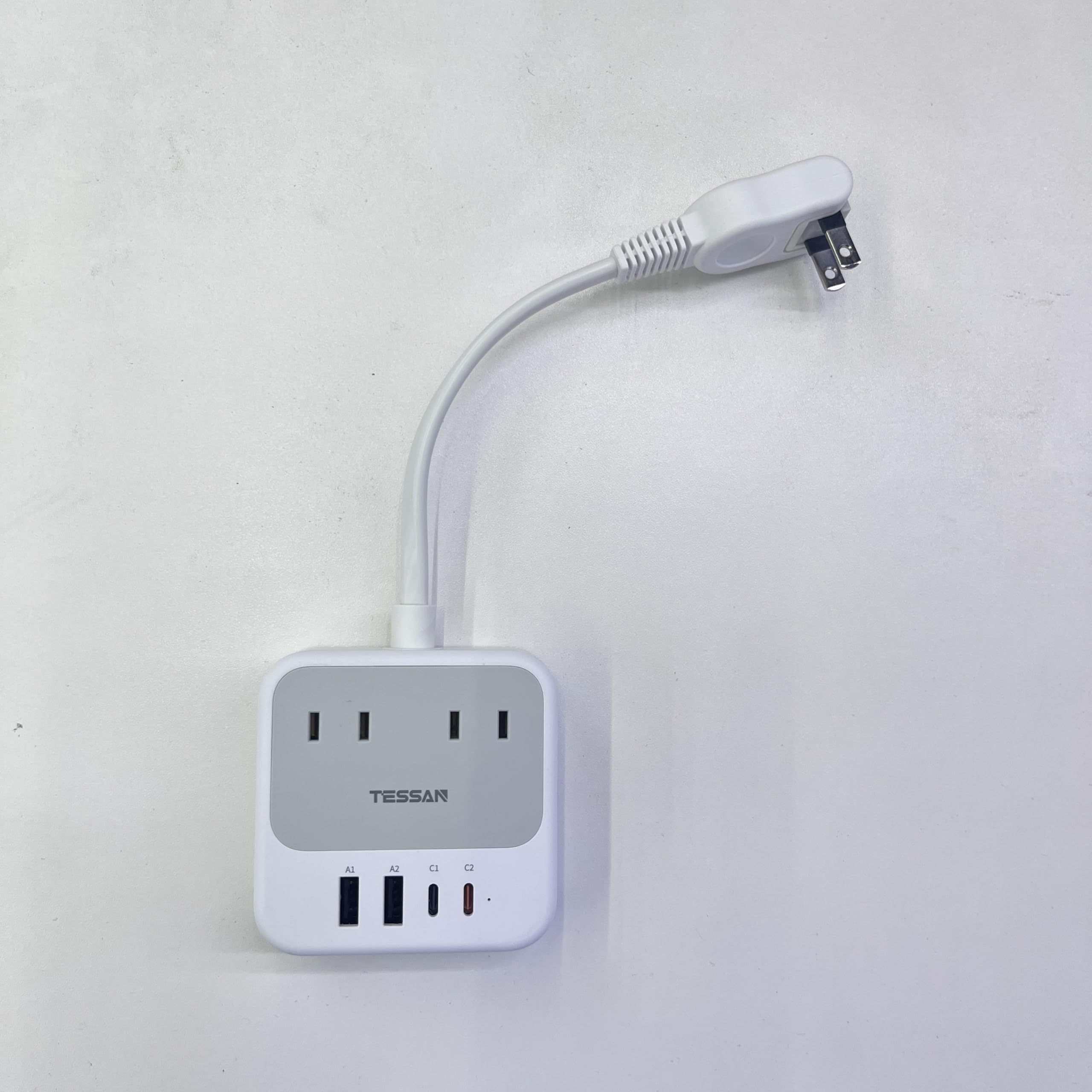 電源タップ USB付き 延長コード 2M TESSAN USBコンセントタップ 4個AC口 3つUSBポート テーブルタップ 蛸足コンセント スイングプラグ 壁掛け式/卓上に 小型軽量 出張/旅行