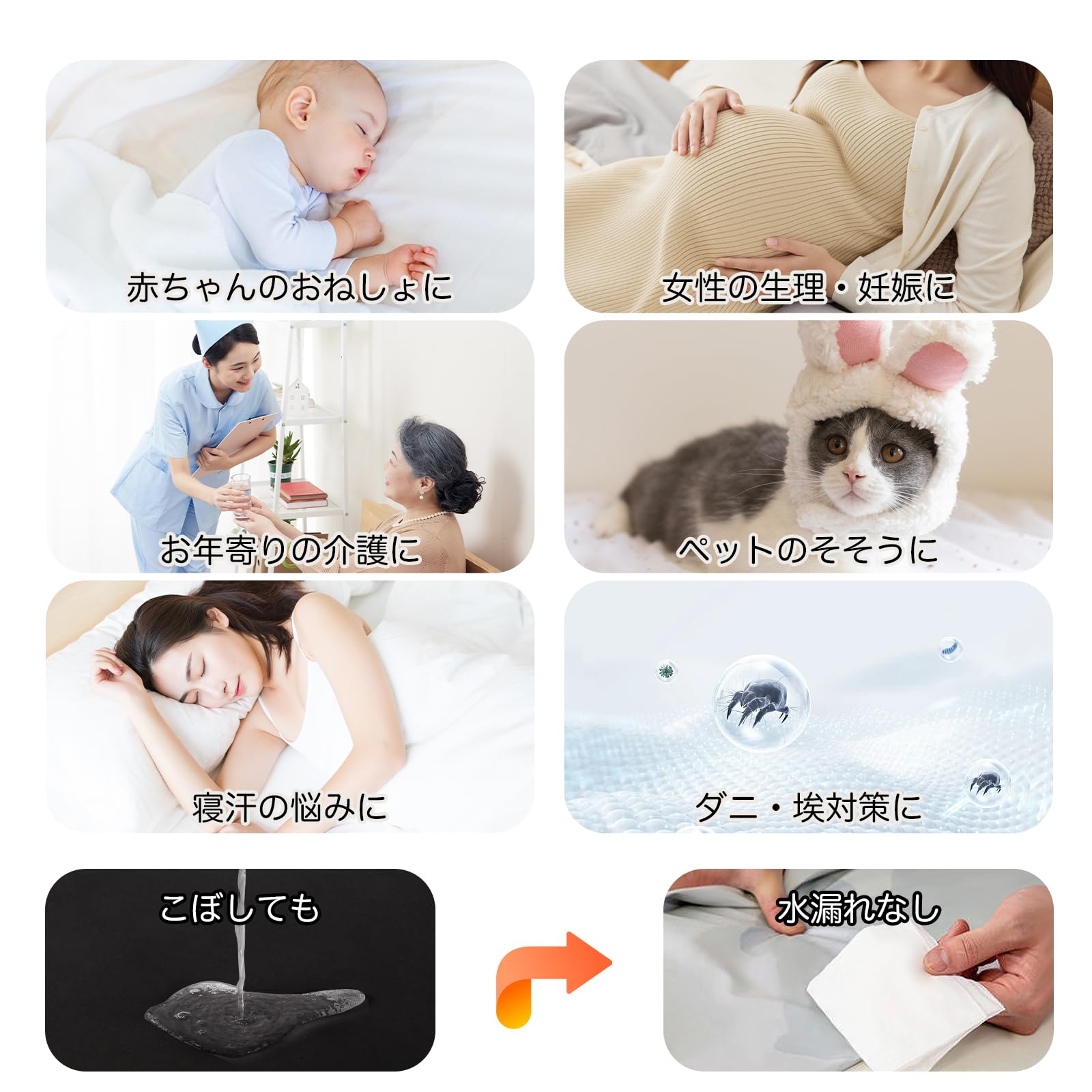 PRETYDAY ボックスシーツ 防水シーツ 2025 高密度生地 マットレスカバー 五面防水 吸水速乾 シングル セミダブル ダブル クイーン ベッドカバー 通気性 洗える 介護用 シーツ 防ダニ 抗菌 防臭 全周ゴム付き ズレ防止 赤ちゃん 大人用