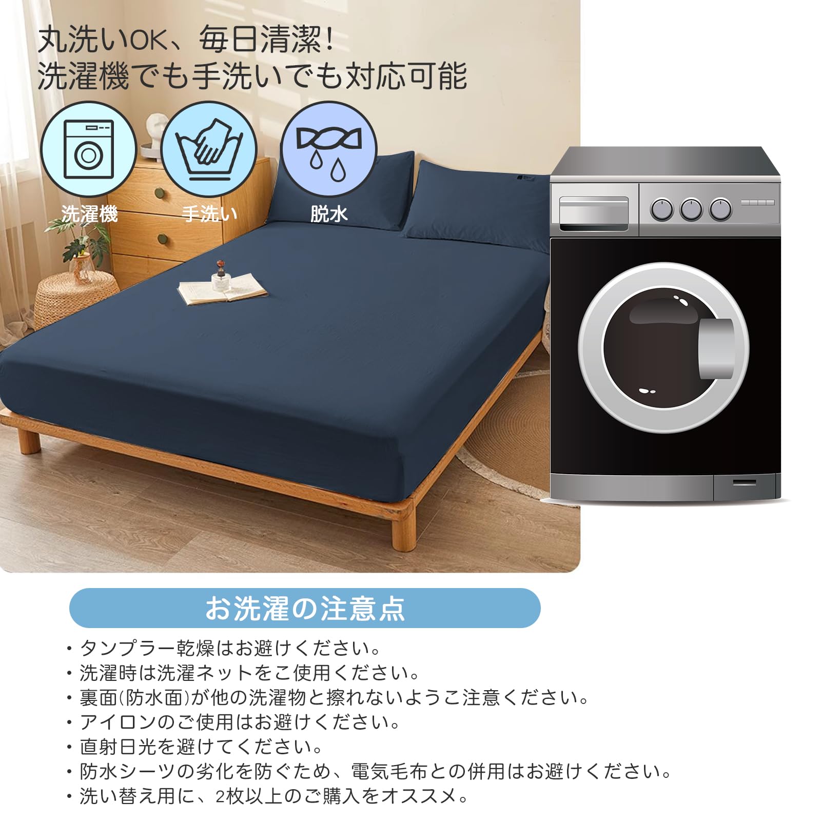 自由スイミン 防水ボックスシーツ 防水シーツ シングル マチ約30cm 吸湿通気 蒸れない 防水パッド オールシーズン 全周ゴムバンド 着脱簡単 おねしょシーツ 柔らかい 看護シーツ 毛玉なし 洗える 速乾 抗菌防臭 防水マットレスカバー ネイビー 100*200cm