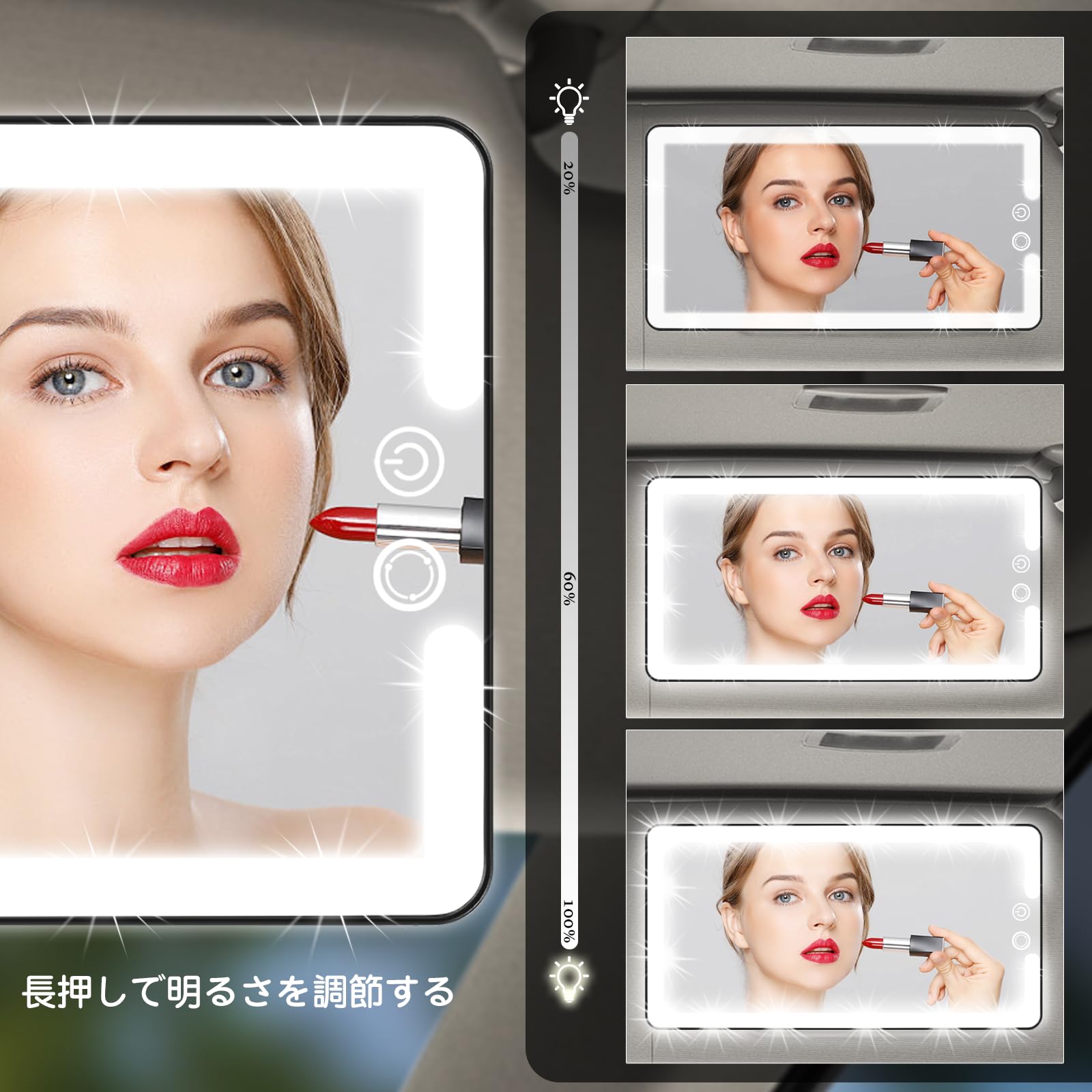 車 サンバイザー ミラー ライト付き鏡 無段階明るさ調節 3つ照明モード ルームミラー 車用化粧鏡 女優ミラー 取り付けが簡単 メイク バイザー 【乗用車/SUV/トラックに対応】 (ブラック)