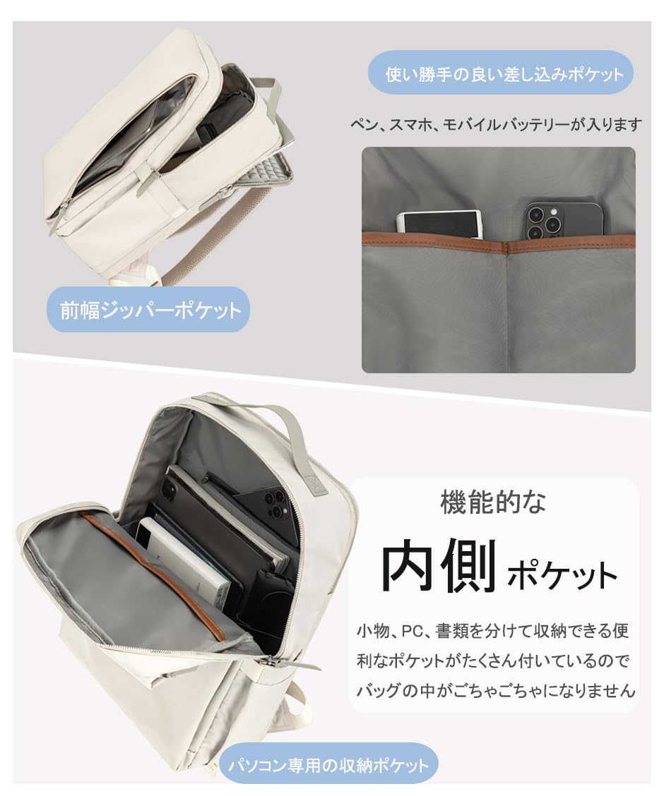 [Pacapet] リュック レディース 大容量 旅行 ビジネスリュック 30L バックパック リュックサック 軽量 人気 撥水加工 充電ケーブル通し穴 PC バッグ 3WAY マチ拡張 乾湿分離 収納多ポケット 通勤 通学 出張 アウトドア ベージュ