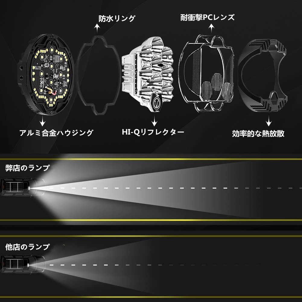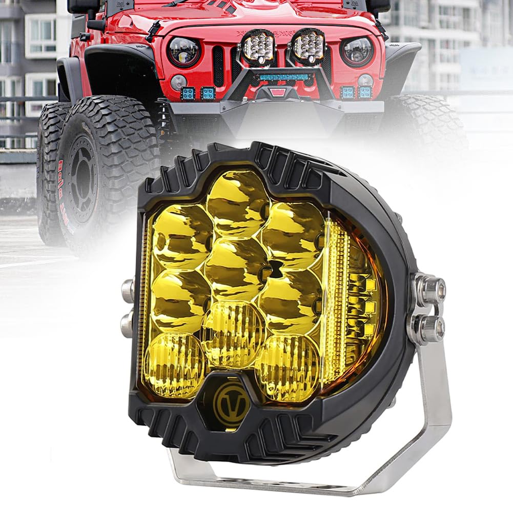 KAWELL 50W フォグランプ 5イン ドライビングライト フォグランプ led ラングラーヘッドライト コンボライト スポットライト LEDドライビングライト IP68 12V 24V兼用 1個セット (イエロー, 5 インチ)