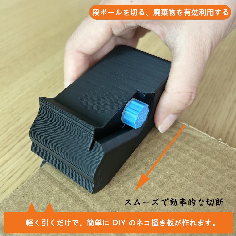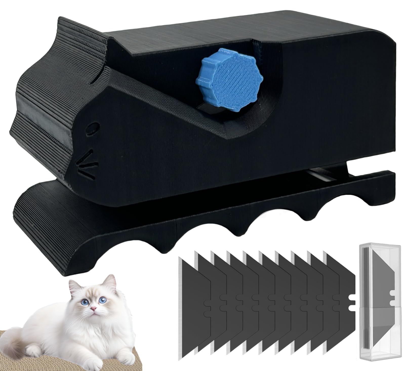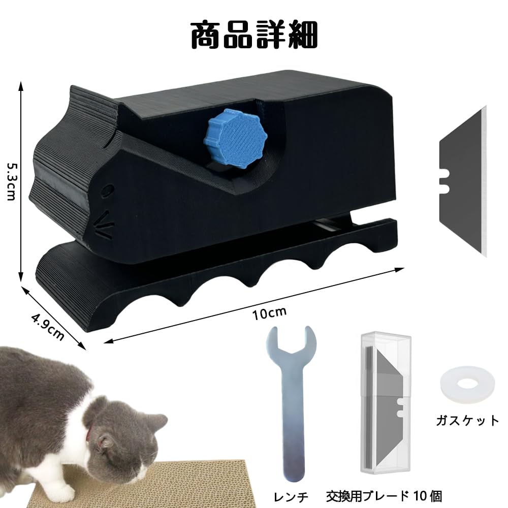 HiLiBoom ダンボールカッター 段ボールカッター 10PCS刃付き 猫型手持ち 猫 爪研ぎ ボード切断ツール つめとぎ 猫 猫抓板用3Dプリント切断機 DIY 猫用爪とぎボード道具 操作簡単 猫好きの方へのプレゼントに最適 (ブラック)