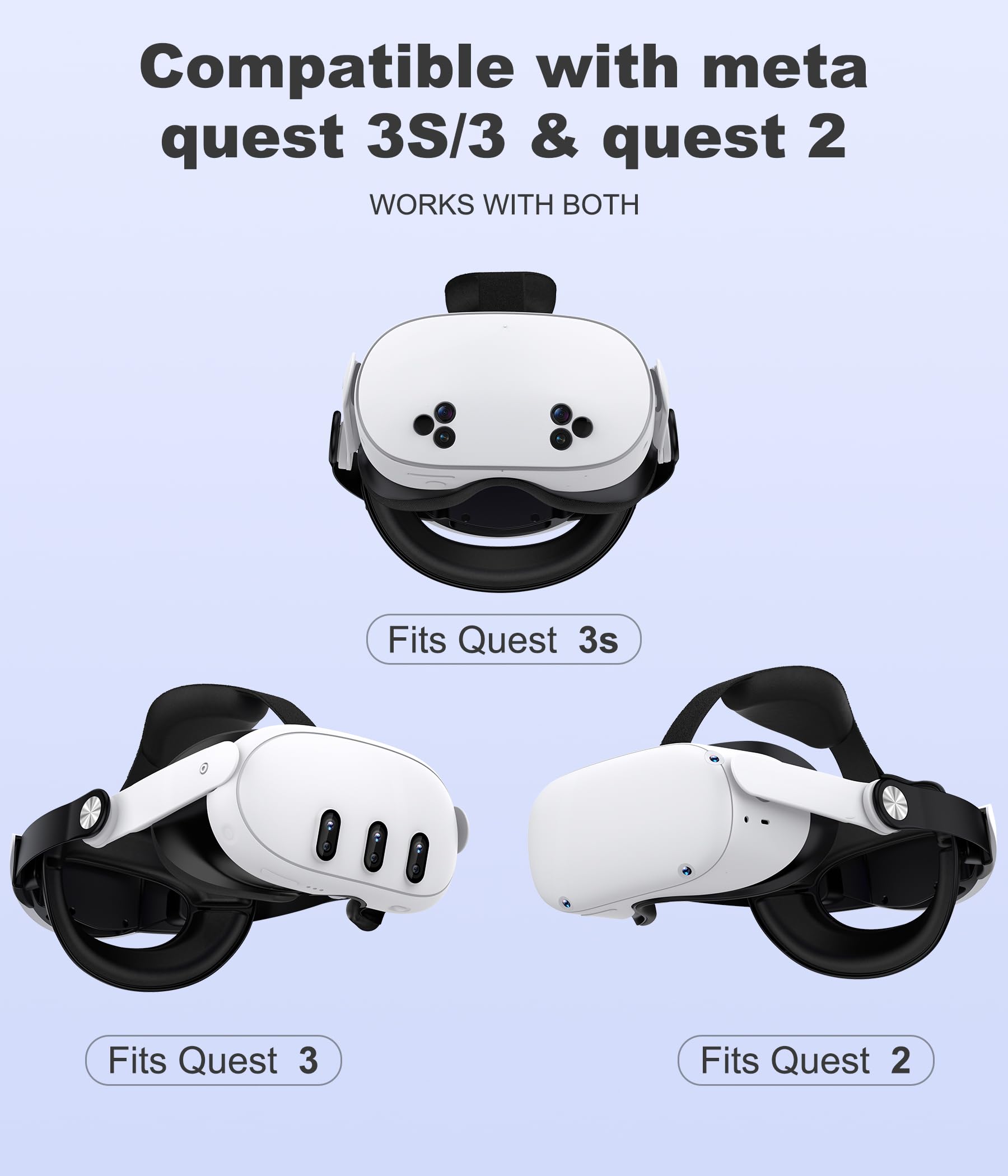 Elekasumi Meta Quest 3S/Quest 3/Quest 2用 ヘッドストラップ ノブ調節可能 ストラップ強化サポート 調整可能 快適設計 & 圧力軽減 VRヘッドセットアクセサリー