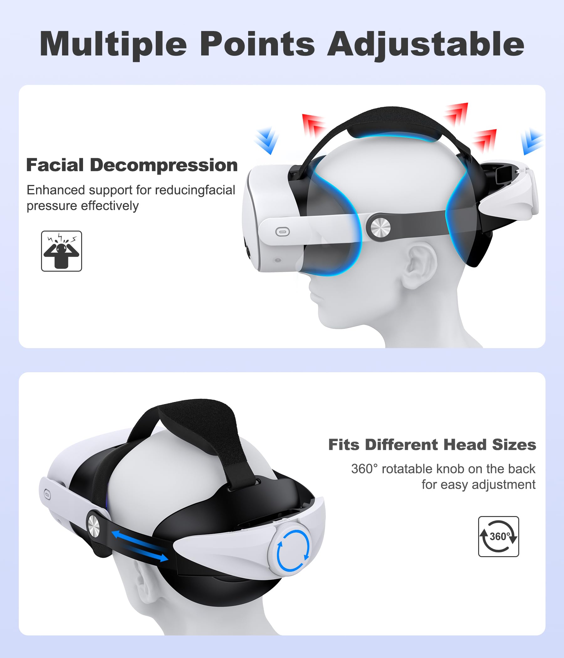 ヘッドストラップ ダブル調整ノブ搭載 エリートストラップ代替 VRヘッドセットアクセサリー 強化サポート&圧力分散&長時間プレイ対応