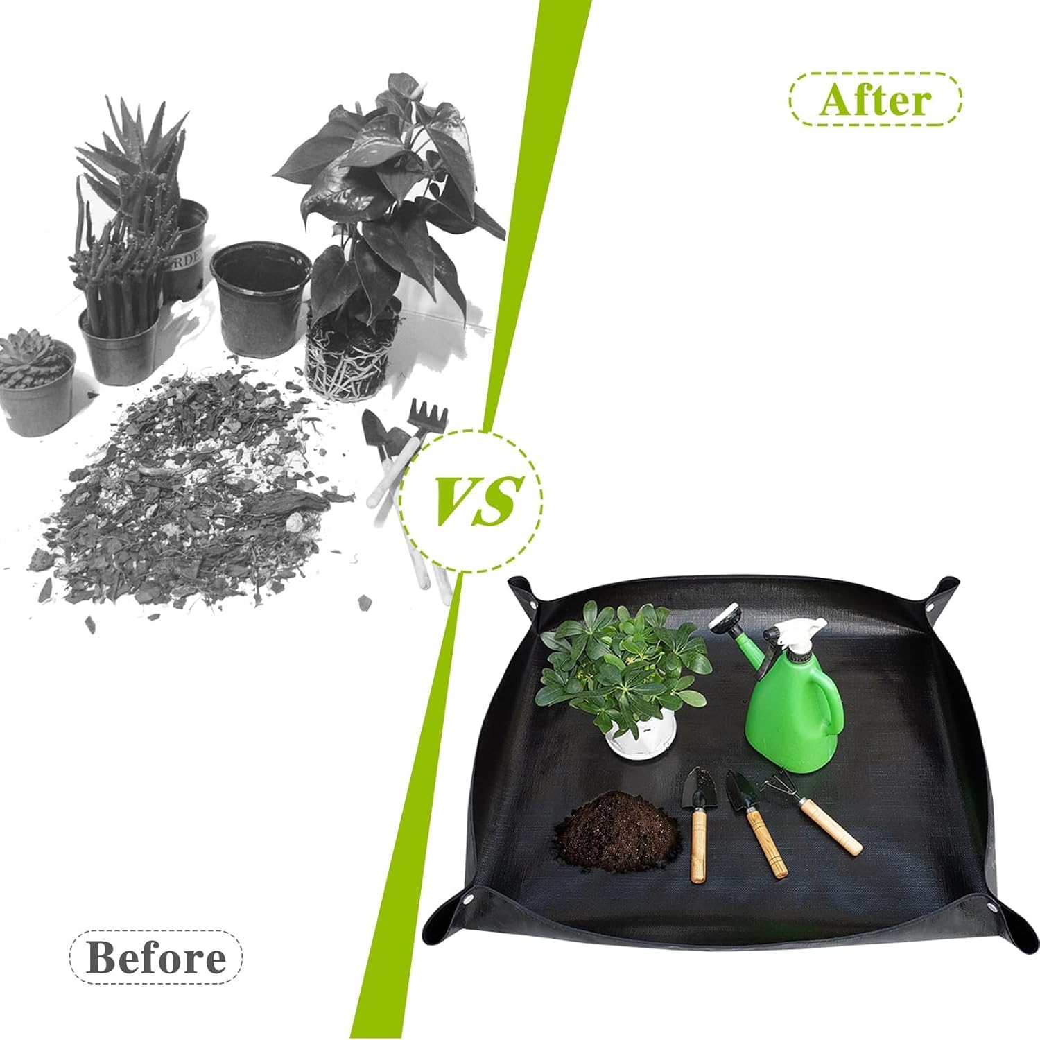 植物移植ガーデニングシート、折りたたみ式、植木鉢マット、鉢植え、防水、汚れ防止、ガーデニング、100cm x 100cm (ブラック) (黒)