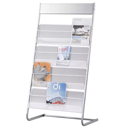 WoRefCra パンフレットスタンド 雑誌ラック 4段 マガジンラック スチール製 メッシュ構造 折り畳み式 スリム 省スペース フロアスタンド カタログスタンド 業務用 展示会 店舗 オフィス 待合室 おしゃれ 大容量 136×63×36cm