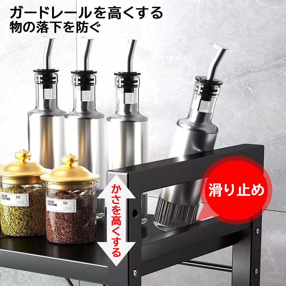 NAYIV キッチン棚 キッチンの棚 金属製の家庭用収納ラック 幅80CM 電子レンジ収納ラック キャスター付き 大容量 キッチンラック キッチン収納 家電や器具収納 汚れに強い 組み立て簡単 防水 取り外し可能 (黒)