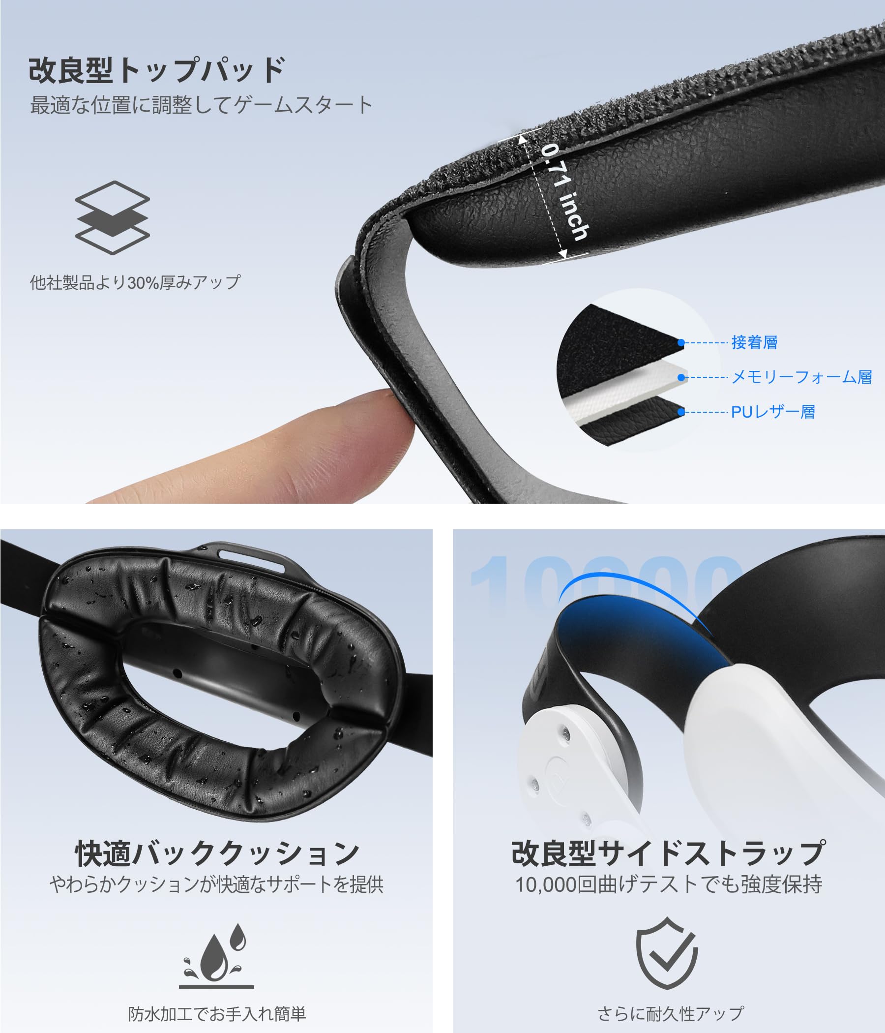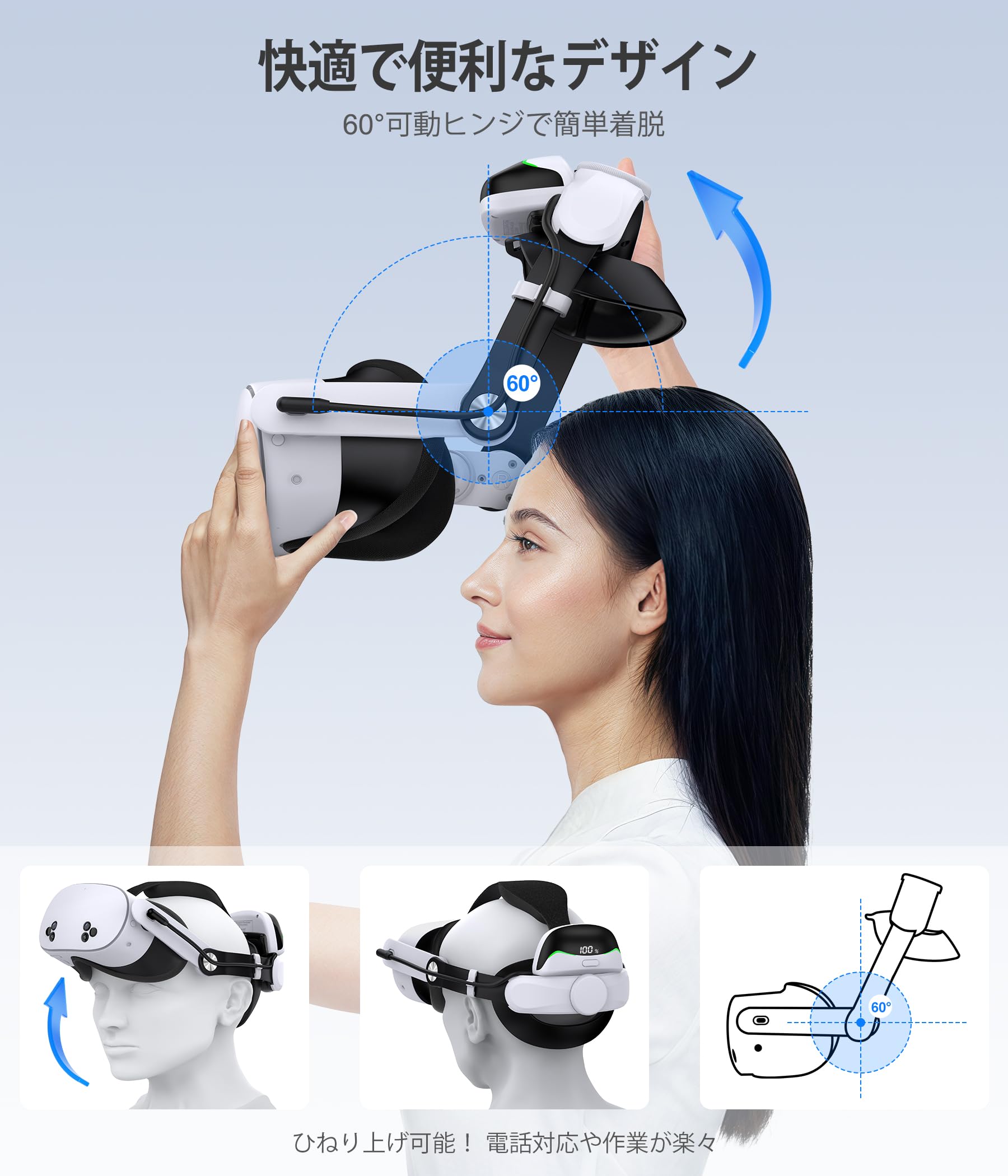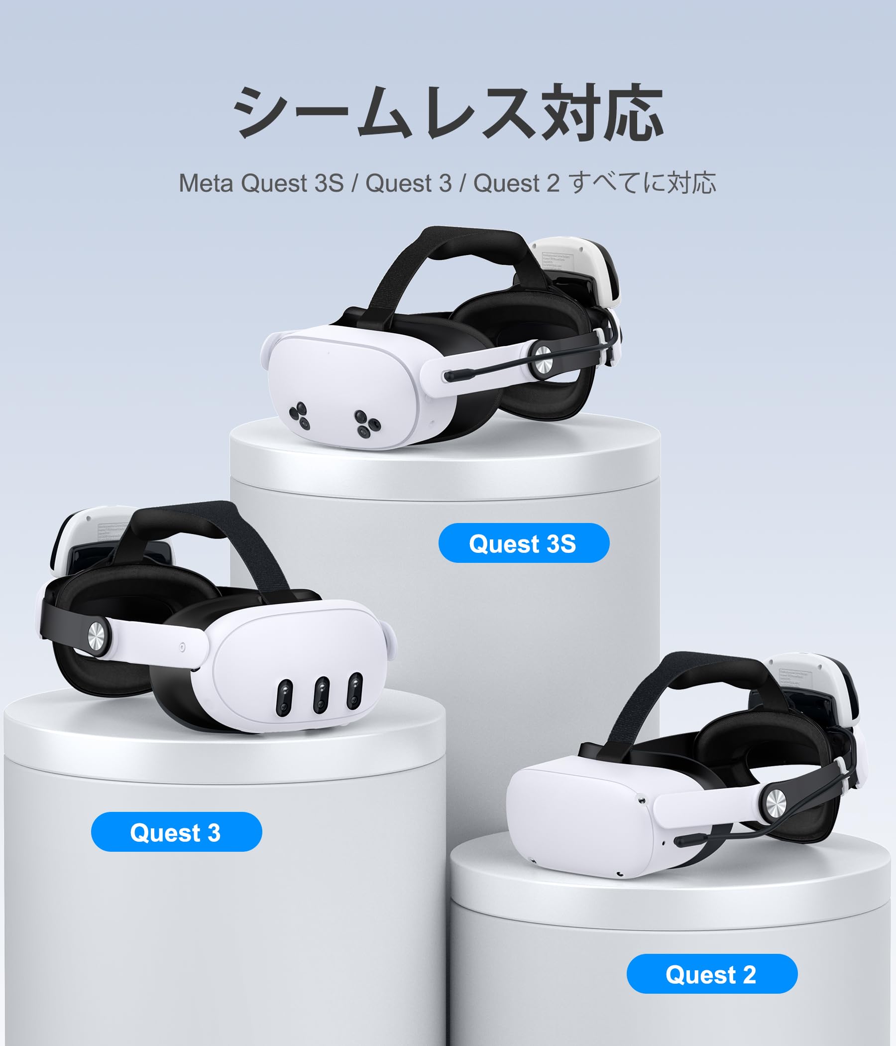 Quest 2/3/3S 対応 長時間プレイに最適な交換用ヘッドストラップ バッテリー内蔵
