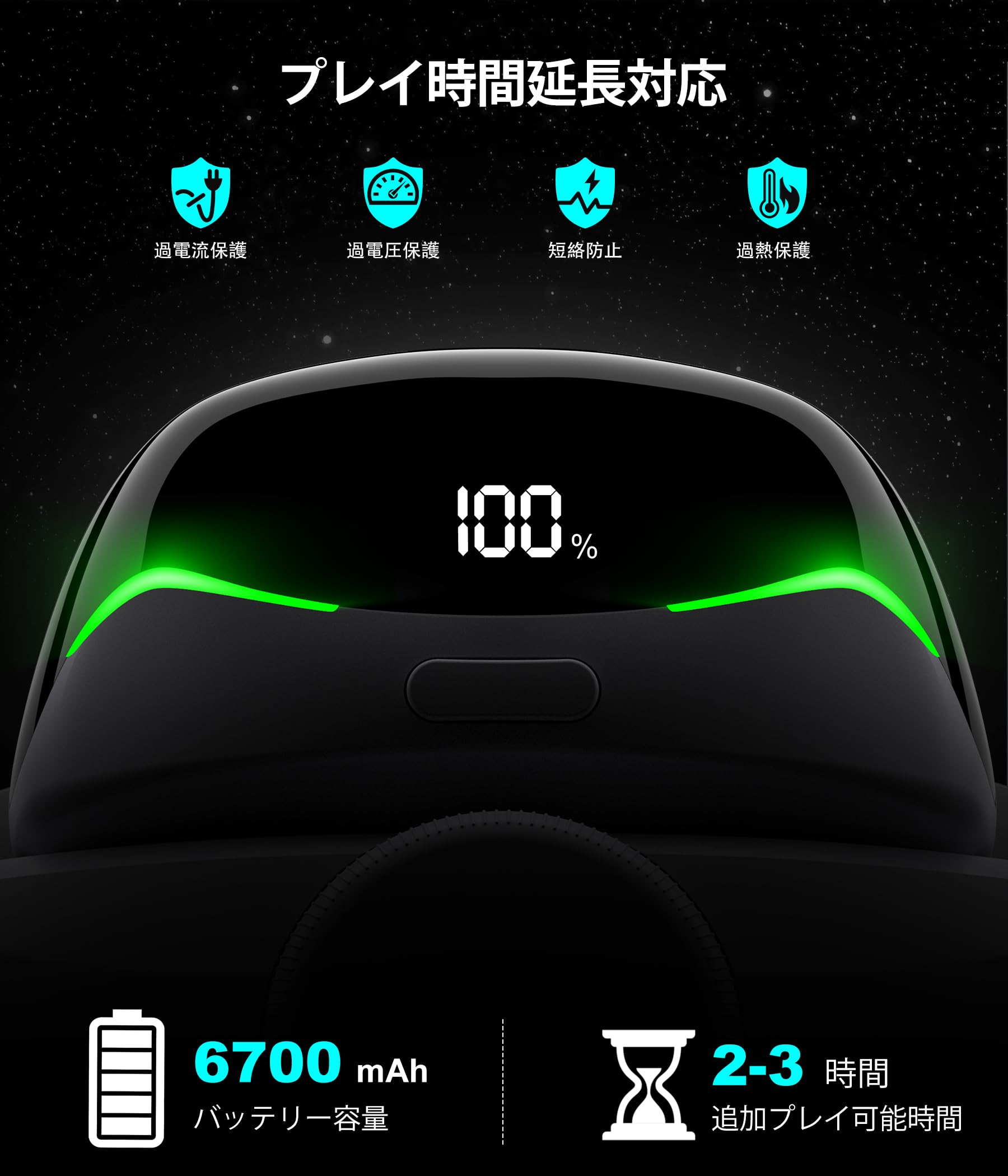Quest 3S/Quest 3/Quest 2用ヘッドストラップ、ダブルノブで簡単に調整可能で、VRヘッドセットのフィット感を最適化。6700mAhの大容量バッテリーを搭載し、