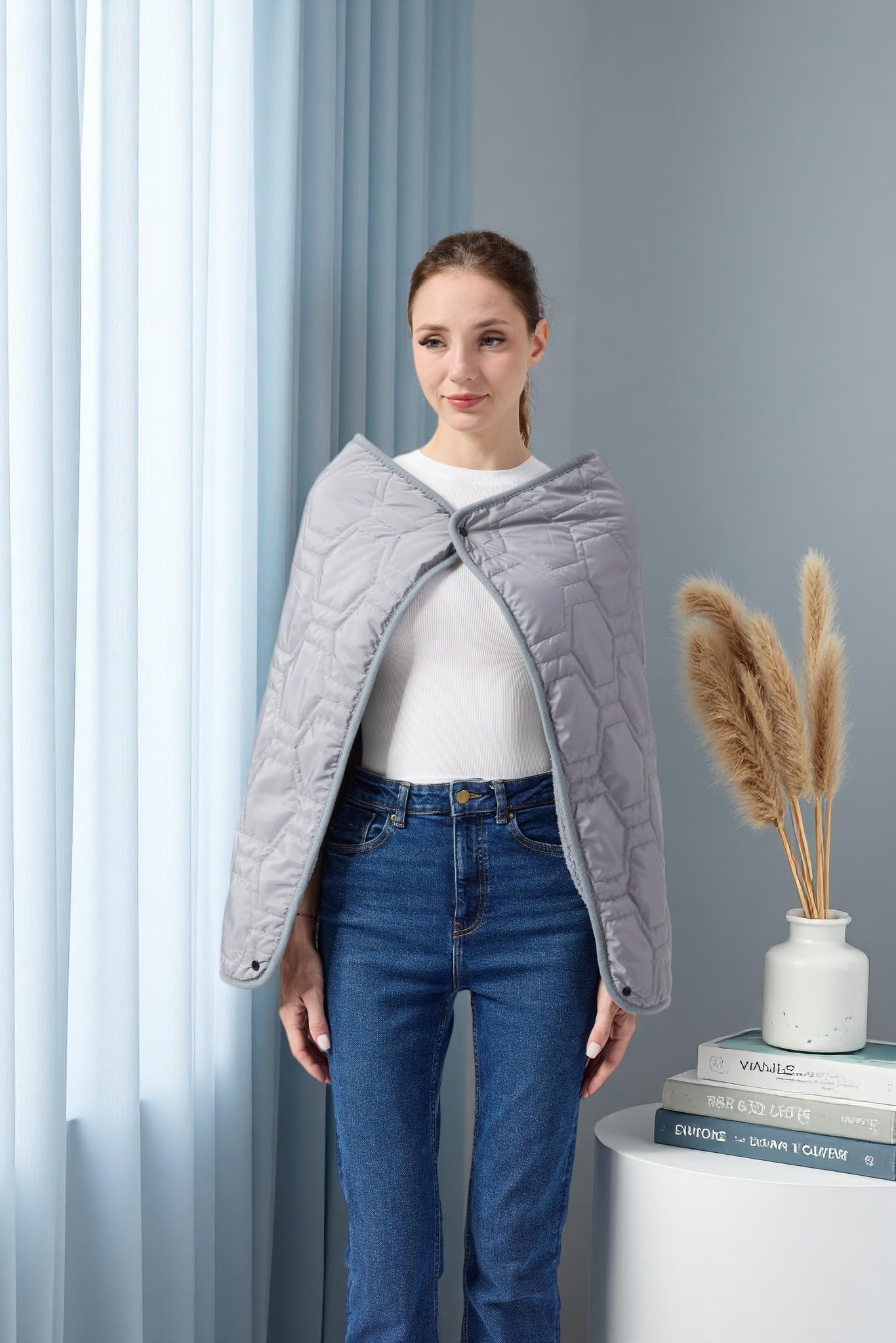 本品は、ひざ掛けとしても、ストールとしても、腰巻としてもお使いいただけるマルチアイテム。オフィスの防寒対策や在宅勤務時のひざ元の冷え対策、アウトドアや車中での休憩時など、さまざまなシーンで活躍します。表面はキルト加工で型くずれしにくく、裏面は肌ざわりの良いボア生地を採用します。二層構造が空気の層を作り、効率的に熱を逃がさず、しっかりとした保温性を実現しました。肌に直接触れても柔らかく、快適な暖かさをお届けします。ひざから太ももまでをしっかりカバーするのに最適なサイズ感ながら、たたむと省スペース。デスク周りやソファ、車内に常備しておくのに便利です。4隅に取り付けた磨り砂スナップボタンで簡単に形状を固定できるため、ストールとして羽織ればずり落ちず、腰に巻けば動きやすさをキープします。秋・冬はもちろん、春先の肌寒い日や夏場の冷房が気になる季節まで、年間を通じてご愛用いただけます。機能性と実用性を兼ね備えた、ご自宅用やギフトにもぴったりの一枚です。