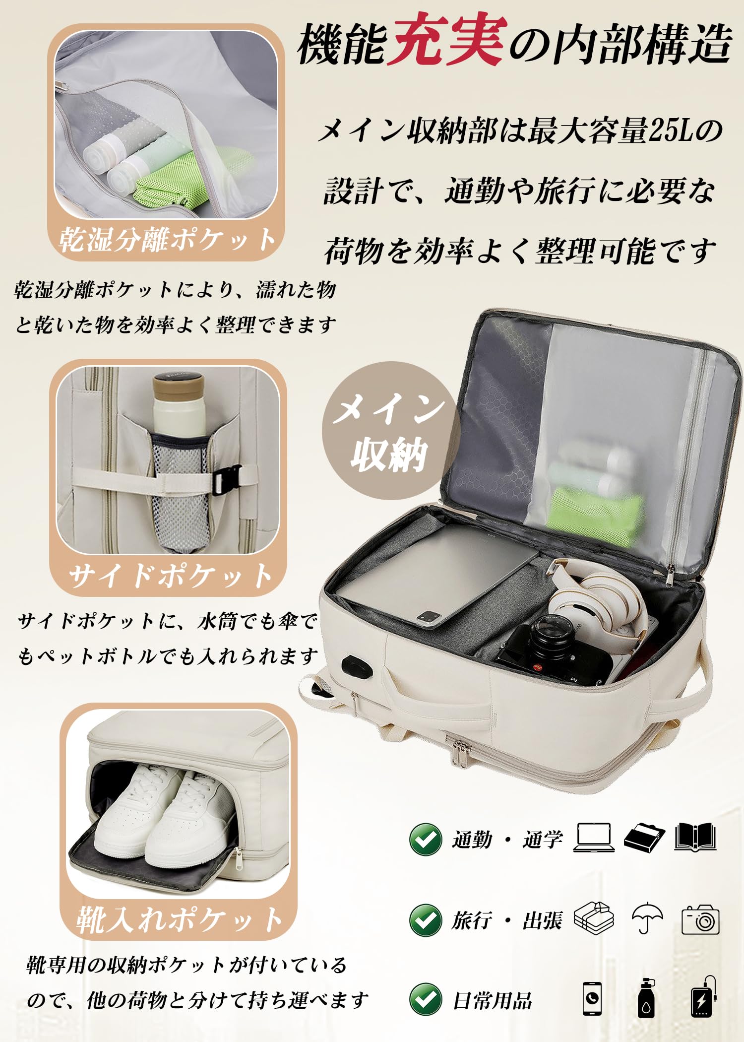 [VENDAGO] リュック 大容量 旅行 ビジネスリュック 30L 大容量 リュックサック 機内持ち込みメンズ メンズ バックパック 防水17インチPC レディース リュックサック 耐摩耗性 反射機能 防水 荷物用ベルト USB充電ポート