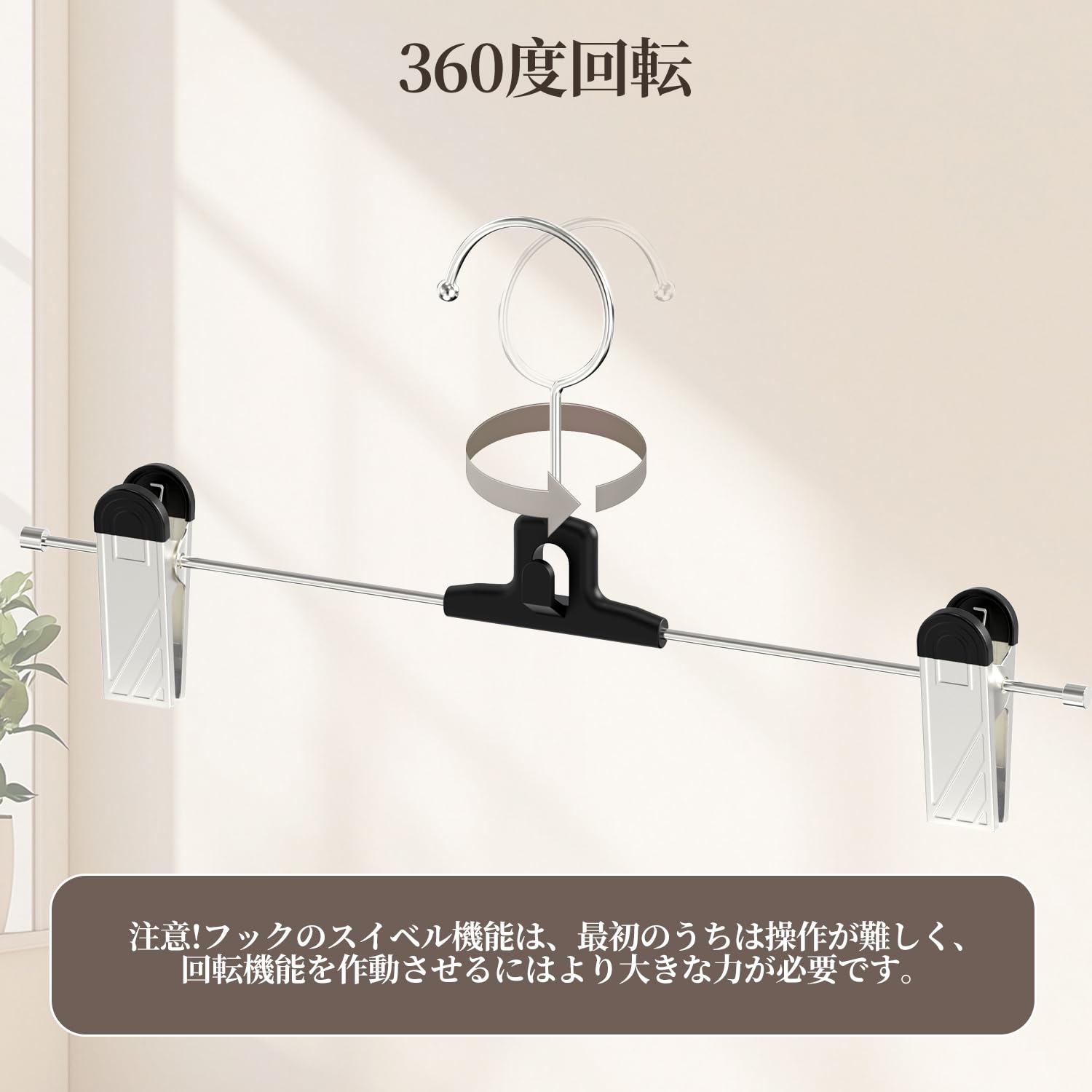ズボンハンガー スカート ハンガー 20本セット スラックスハンガー クリップ付き ボトム ハンガー パンツハンガー プラスチック 360度回転フック サイズ調整可(ブラック)
