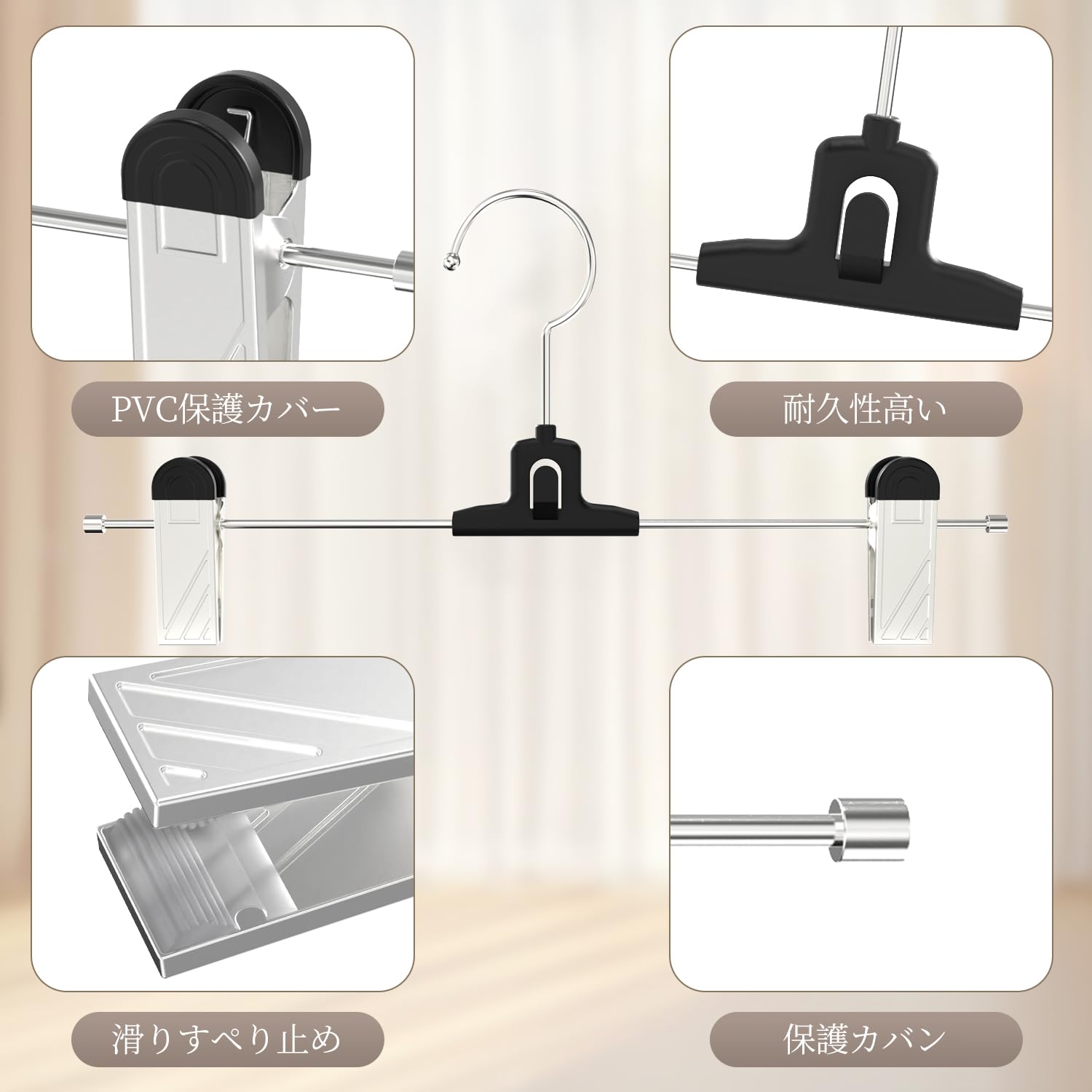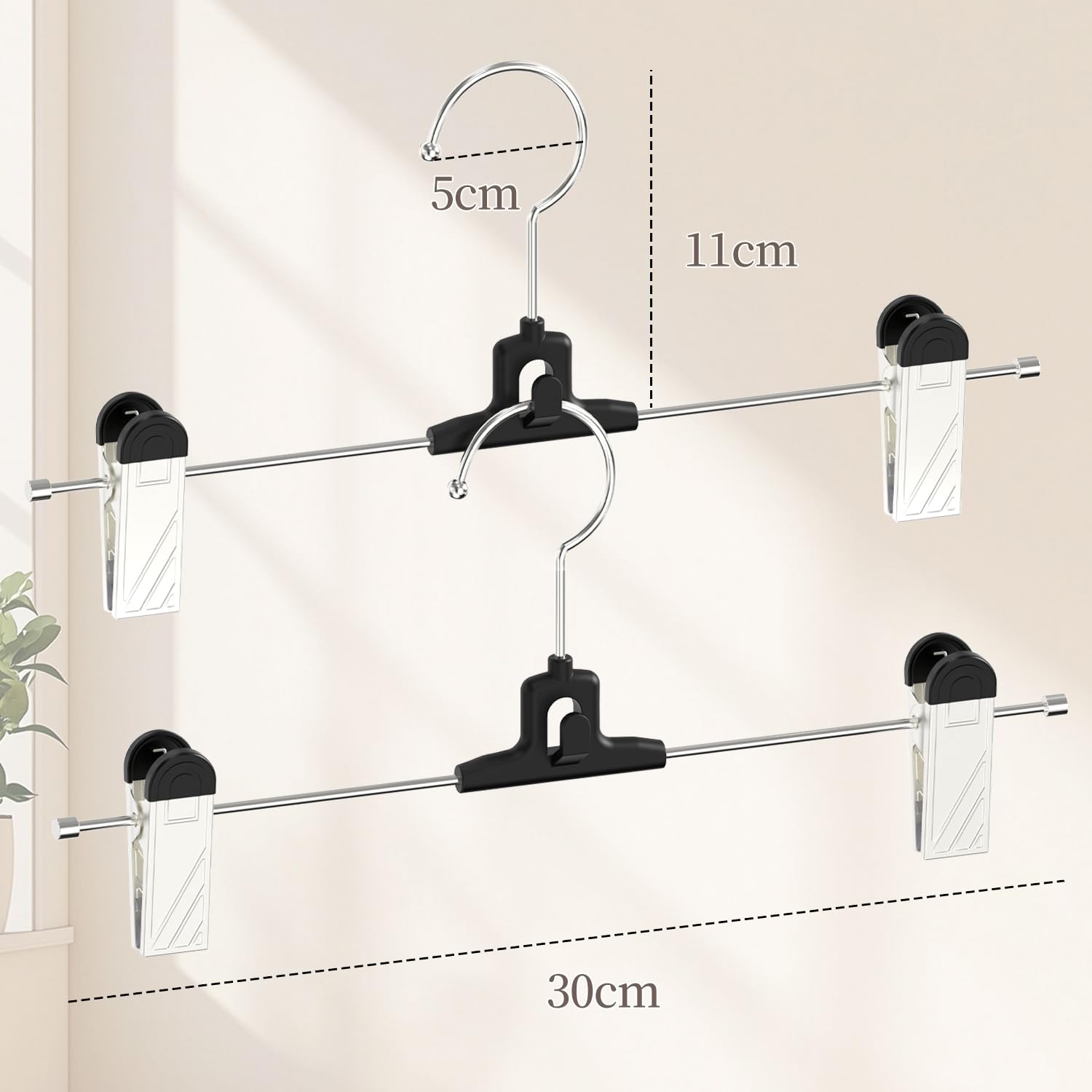 ズボンハンガー スカートハンガー 10個セット すべらない スカート つながるスカートハンガー 強力クリップでスカート落ちない スーツ コート用クリップ (幅28.5cm)ブラック