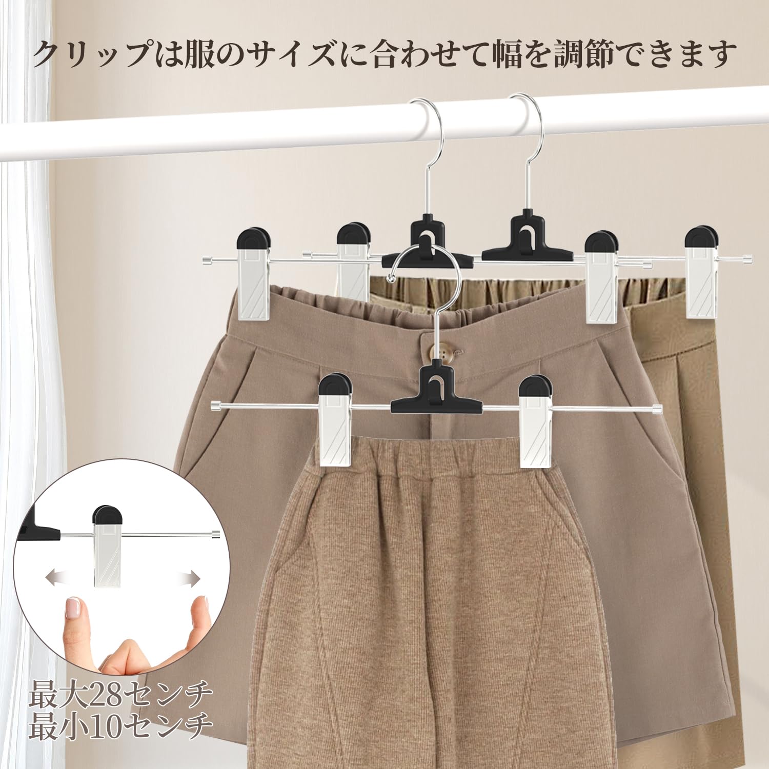 VEHHE ズボンハンガー マルチレイヤースタック可能スラックスハンガー 調節可能なクリップ2個付きスカートハンガー 360回転フック付きパンツハンガー 10本セット