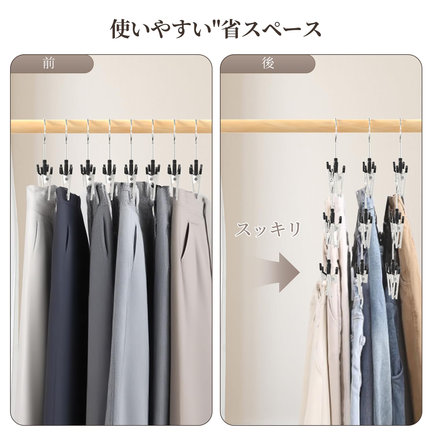 VEHHE ズボンハンガー スタッカブルフック設計付き省スペーススカートハンガー 調節可能なクリップ付き多機能ハンガー 360度回転式滑り止めハンガー 20本セット