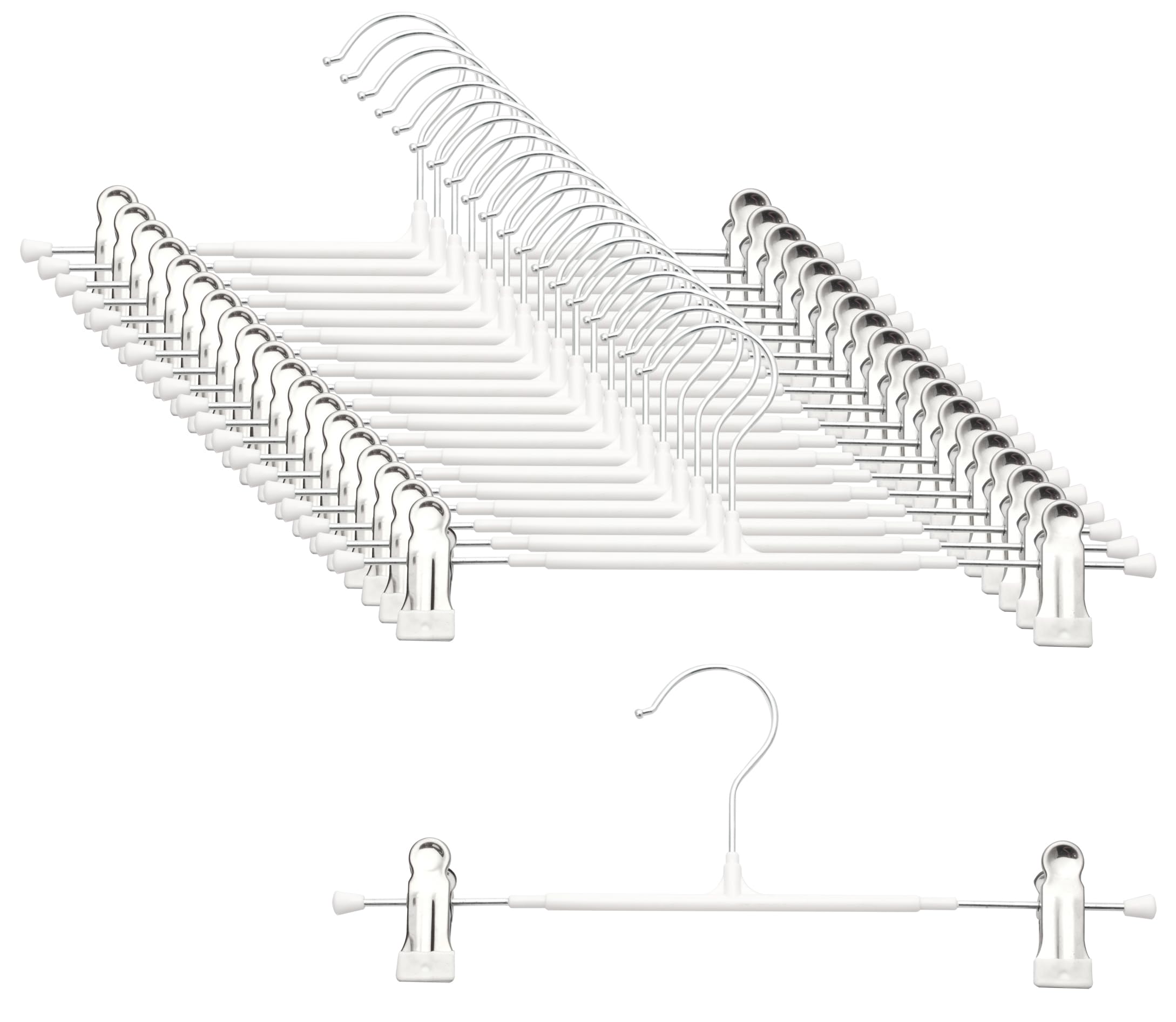 ズボンハンガー スカート ハンガー 20本セット パンツハンガー クリップ付き 360°回転 サイズ調整可能 滑り止め加工 省スペース スラックス スカート 収納 (白)