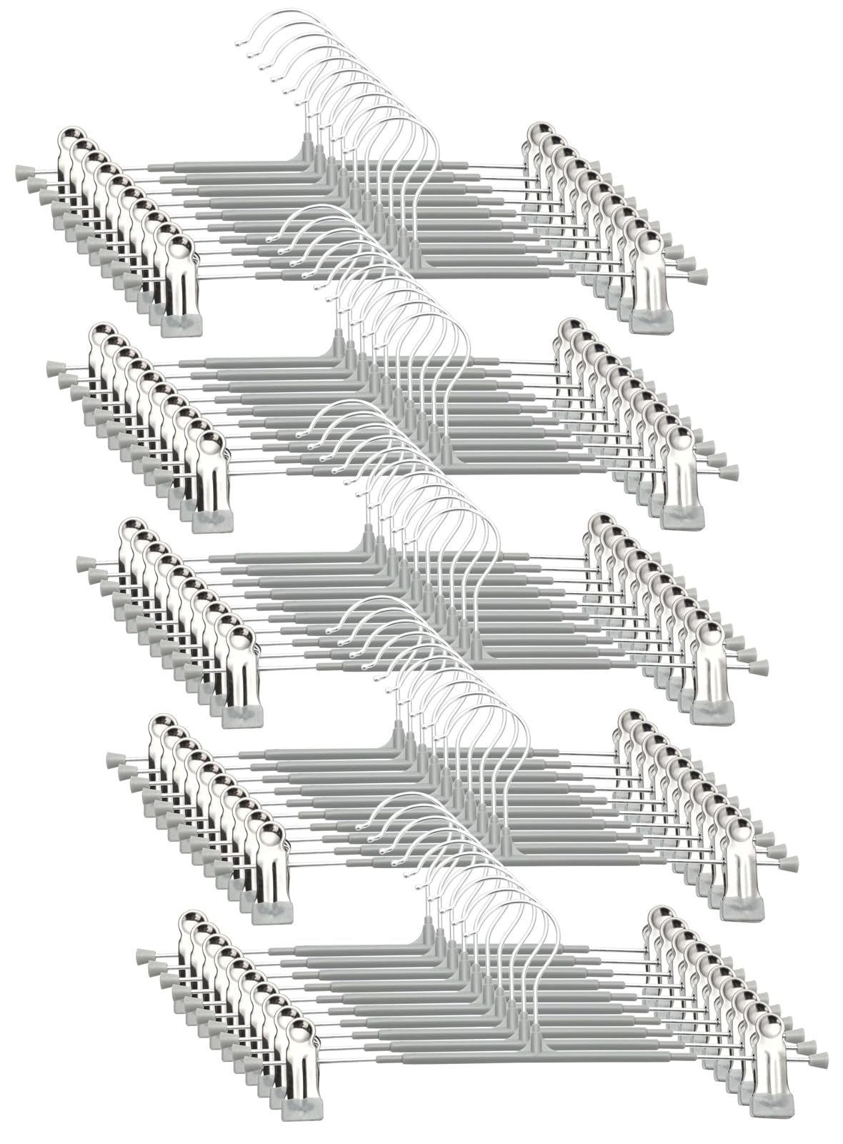 ズボンハンガー スカート ハンガー 50本セット パンツハンガー クリップ付き 360°回転 サイズ調整可能 滑り止め加工 省スペース スラックス スカート 収納 (ライトグレー)
