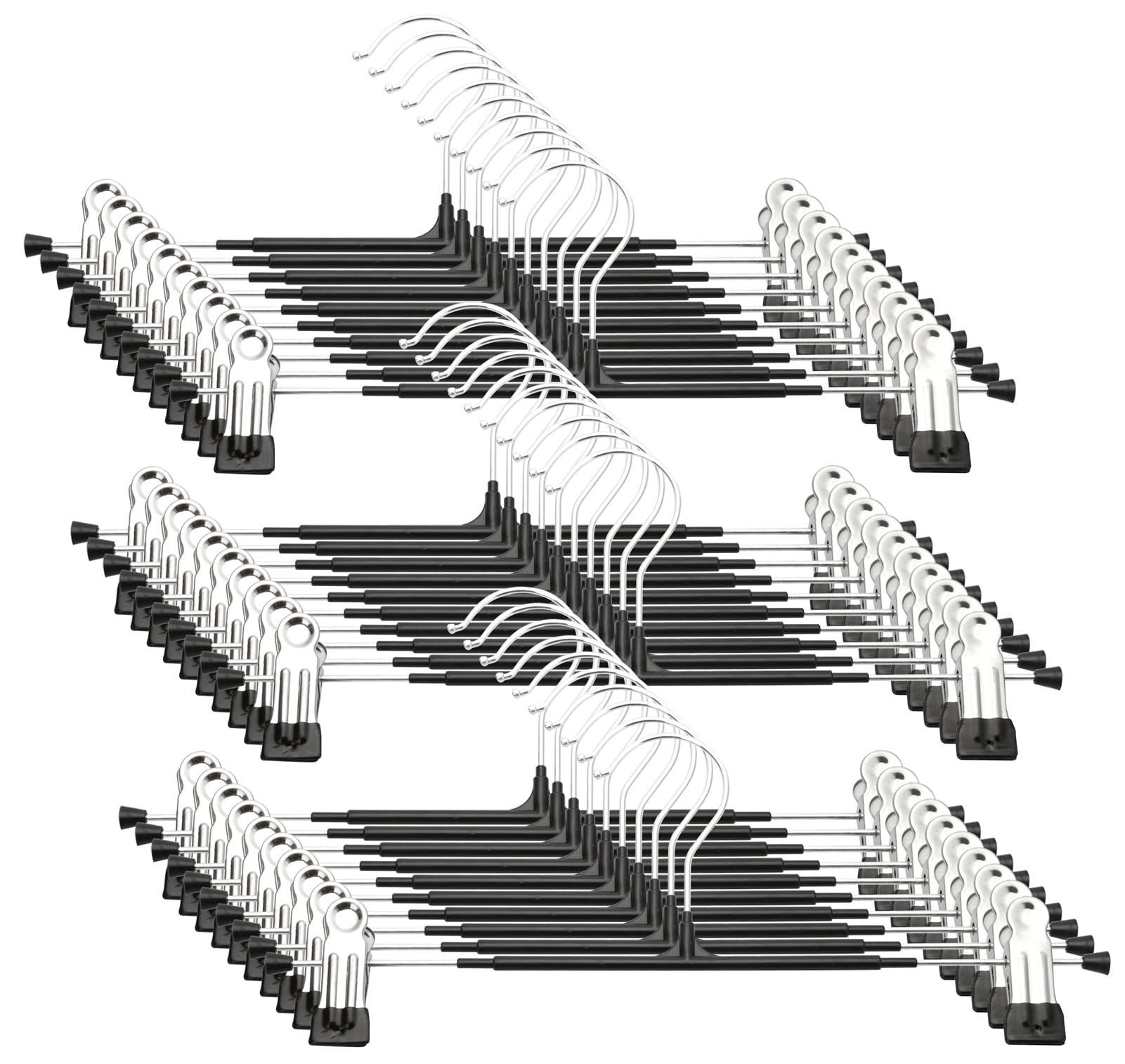 ズボンハンガー スカート ハンガー 30本セット パンツハンガー クリップ付き 360°回転 サイズ調整可能 滑り止め加工 省スペース スラックス スカート 収納 (黒)