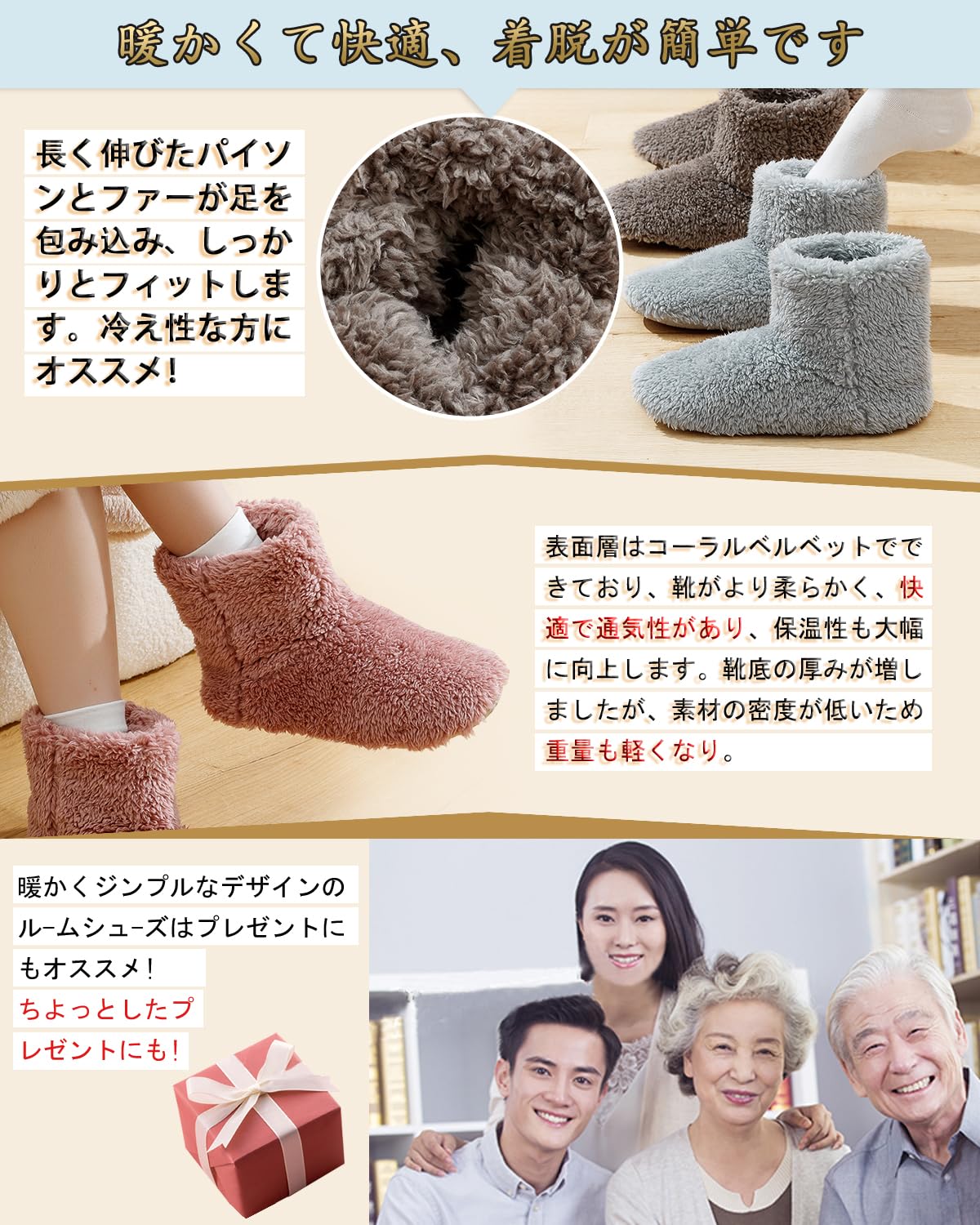 [NEWDENBER] ルームシューズ メンズ スリッパ 暖かい ボア付き 冬用サンダル あったか 防寒 モカシンシューズ もこもこ 滑り止め 履きやすい 洗える スリッポン 室内/外履き