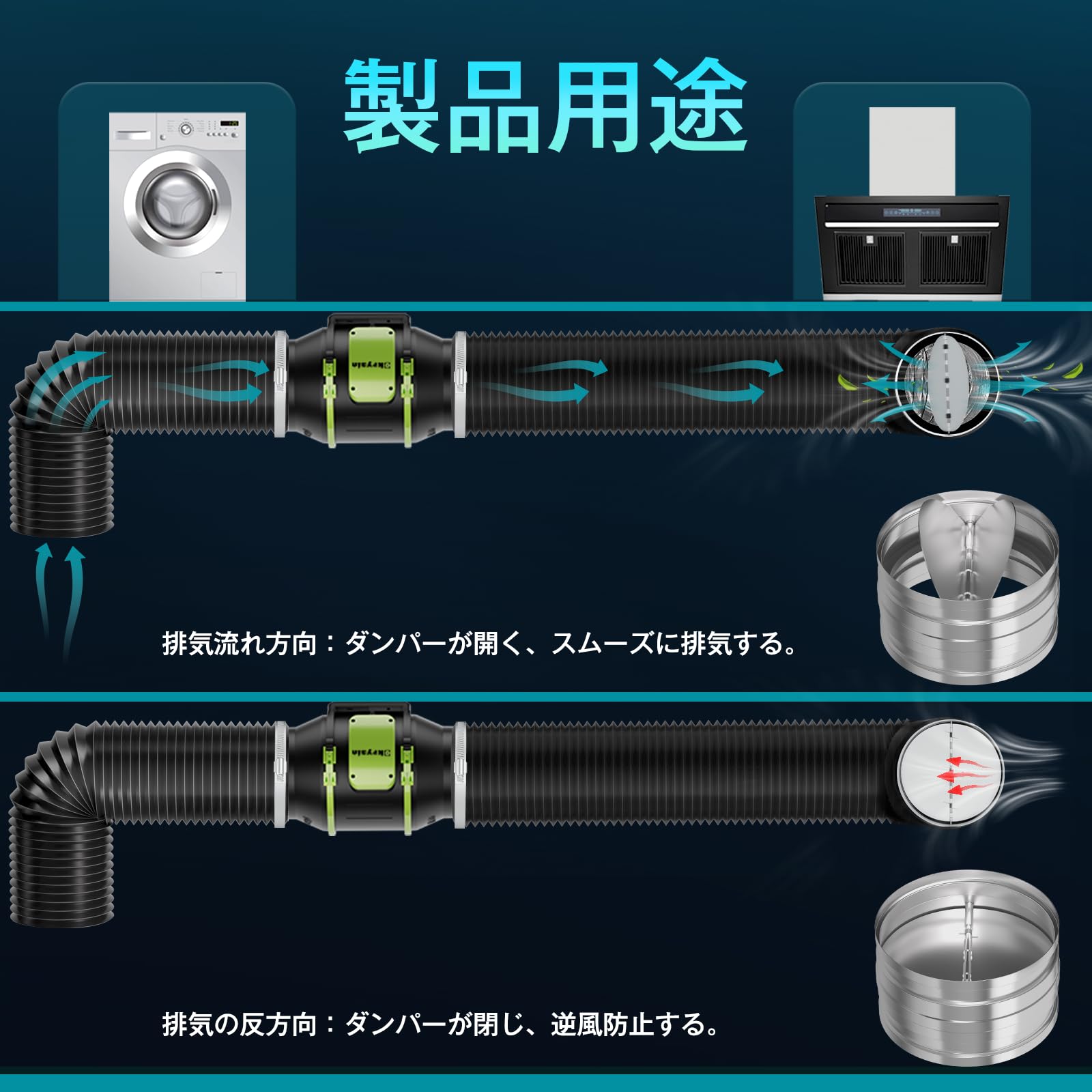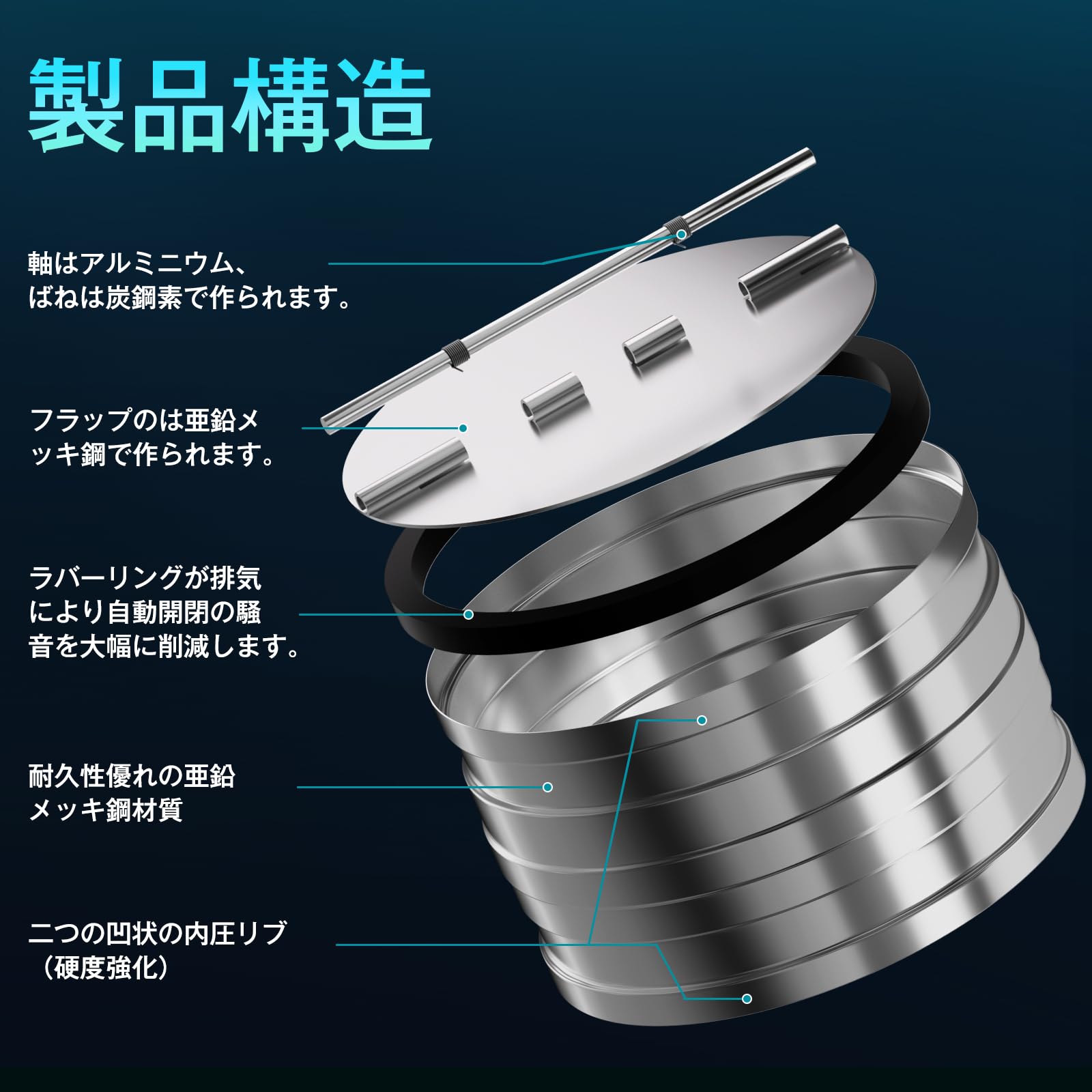 Okryain 逆風防止ダンパー 金属製 チャッキダンパー 逆止弁 逆流防止弁 単方向防塵換気 換気口 換気システム気流制御 逆流防止 換気扇ダクト接続用 (黒/100mm)