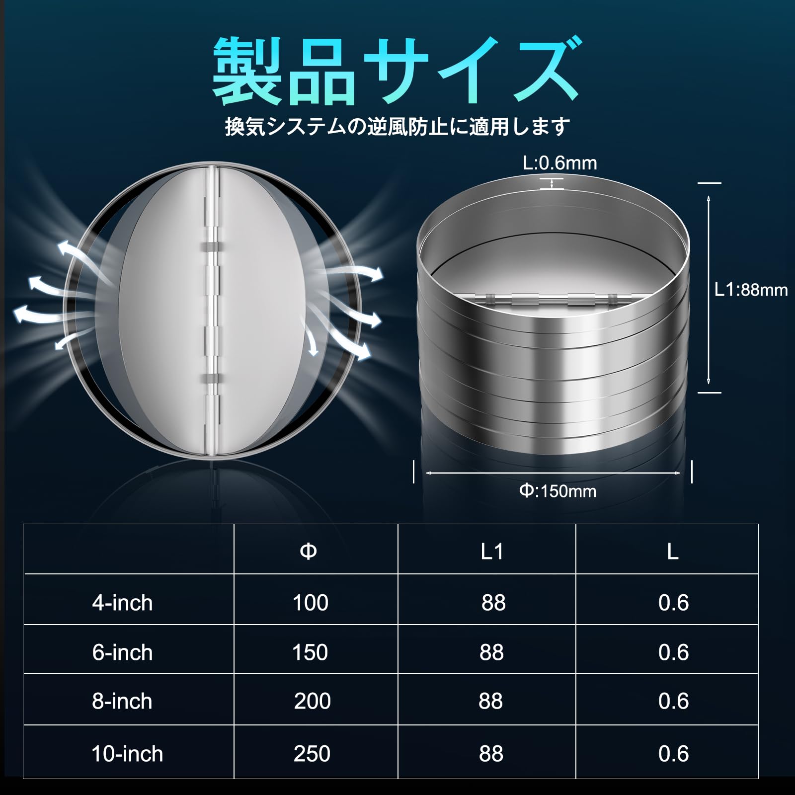 Okryain 逆風防止ダンパー 硬度強化型 チャッキダンパー 逆止弁 逆流防止弁 単方向防塵換気 換気口 換気システム気流制御 ステンレス製 逆流シャッター 換気扇ダクト接続用 (6inch/150mm)