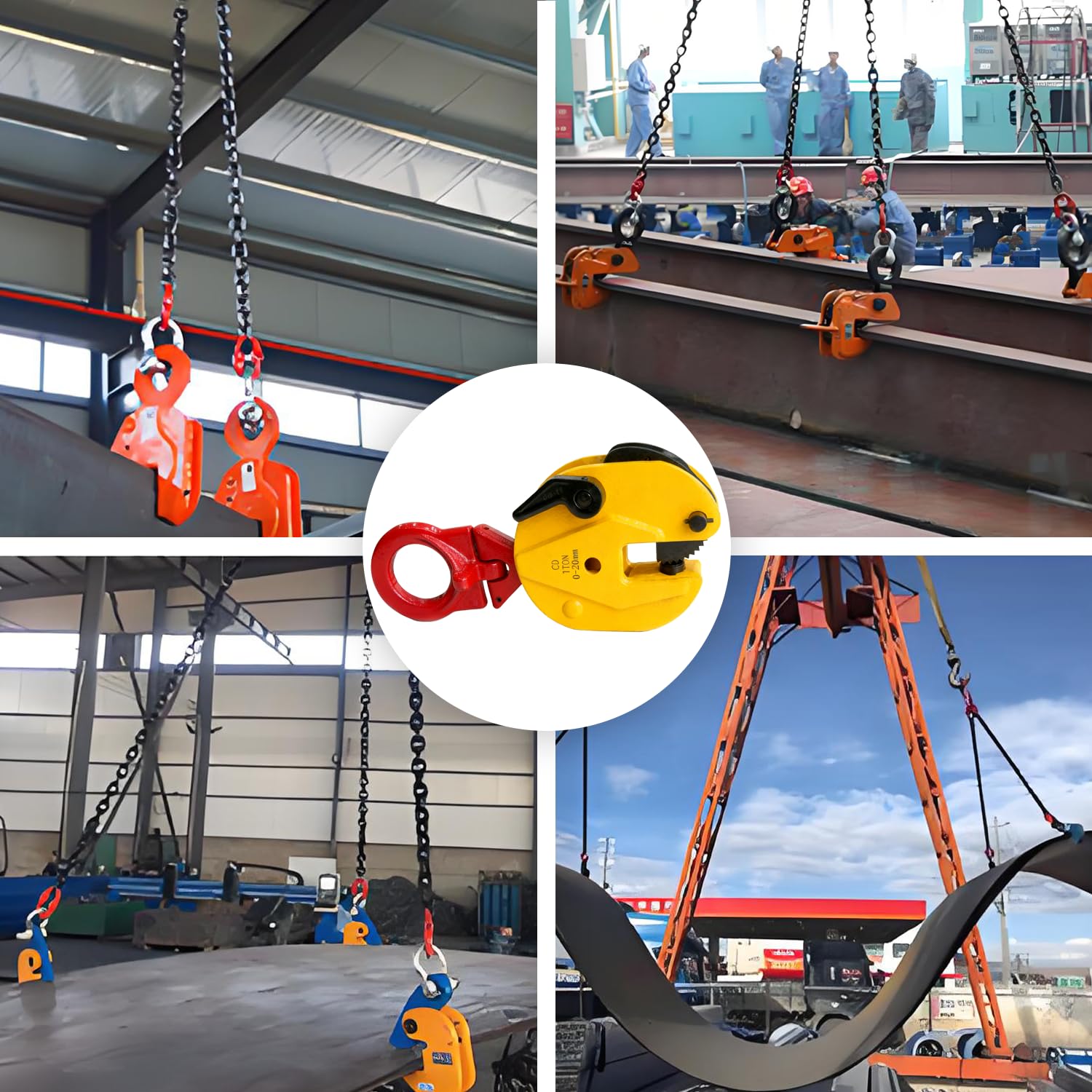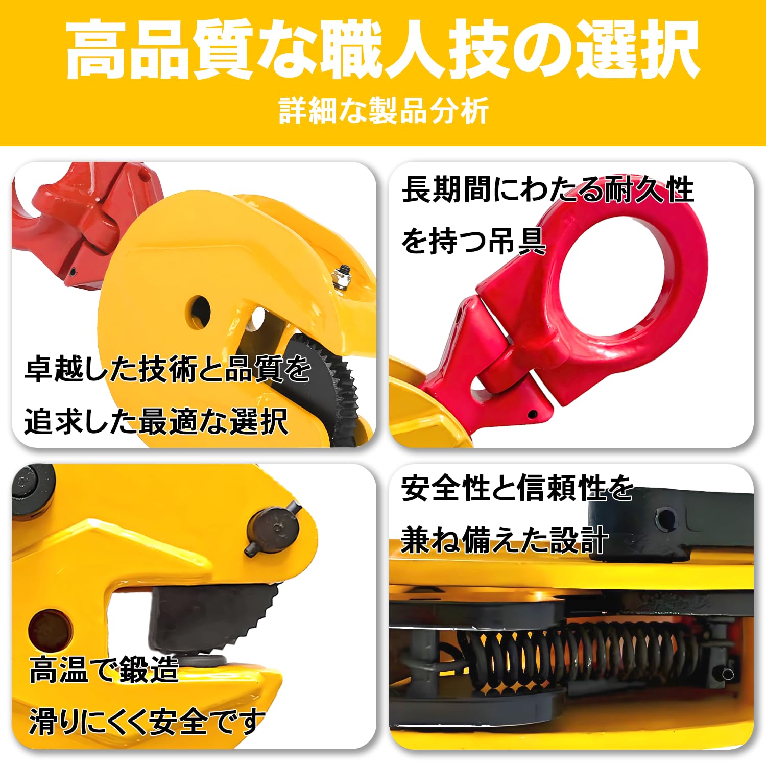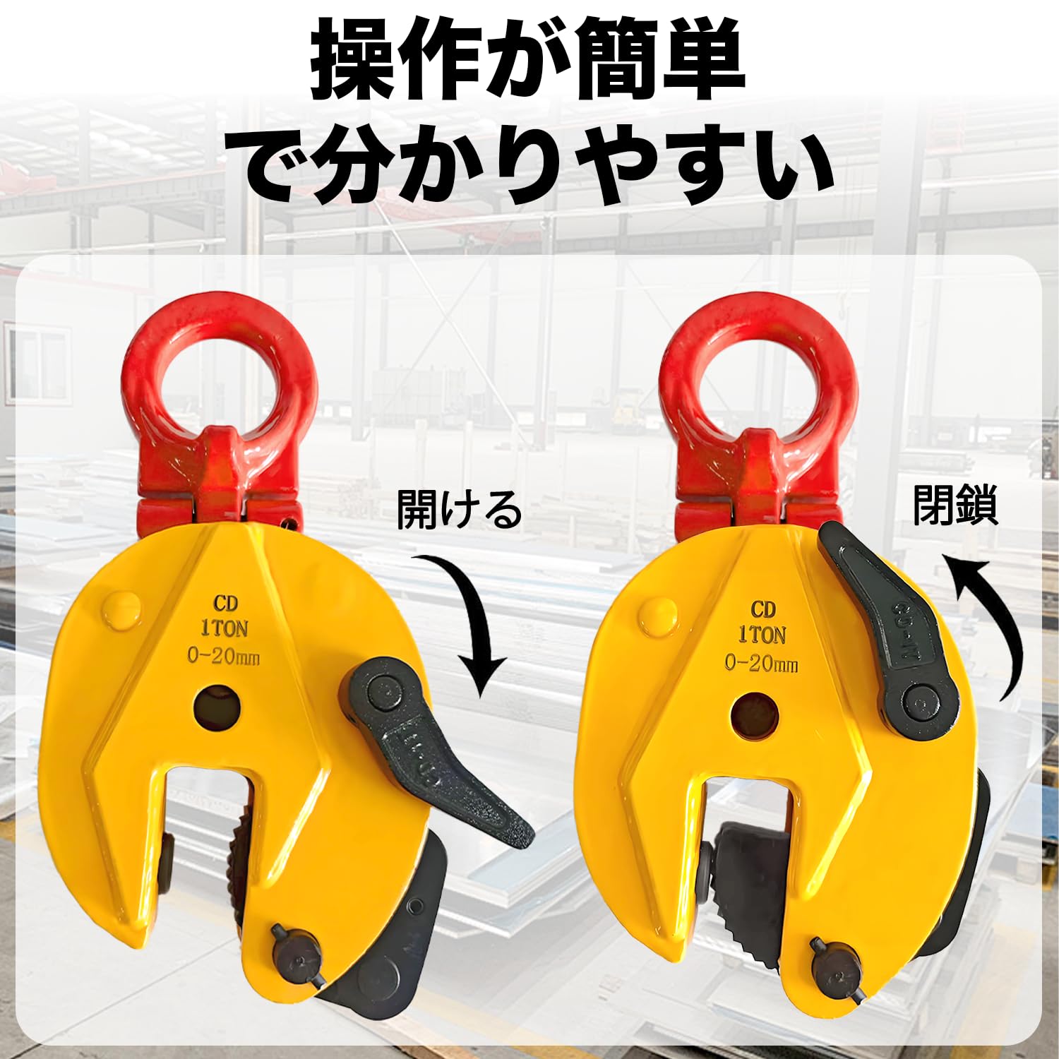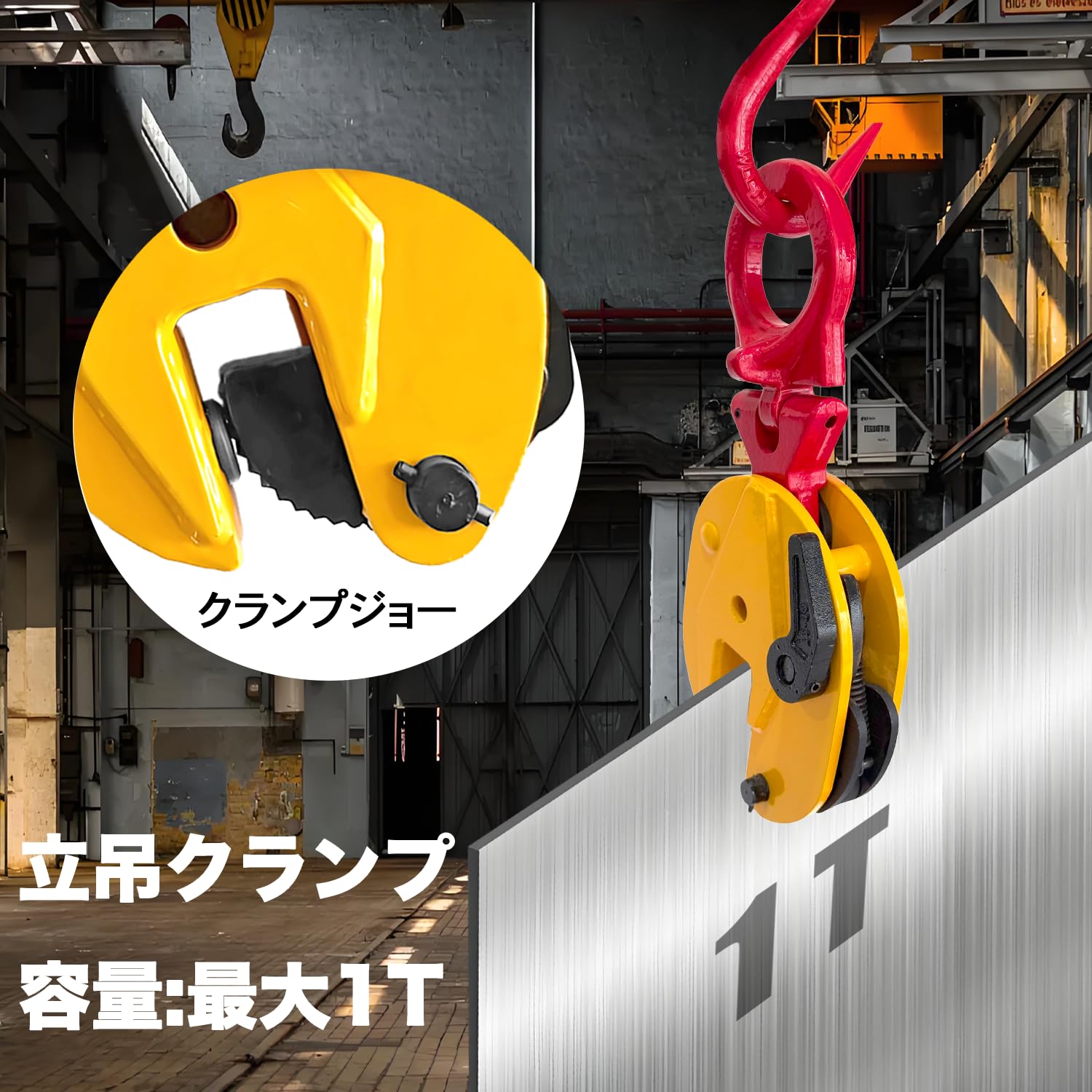 Kroshine 立吊りクランプ 定格容量1T 開口径0-20mmロックハンドル式 縦吊りクランプ荷吊り用吊り具吊りクランプ 運搬作業 建設機械 吊上げ 荷重 立吊クランプ (赤 + イエロー)