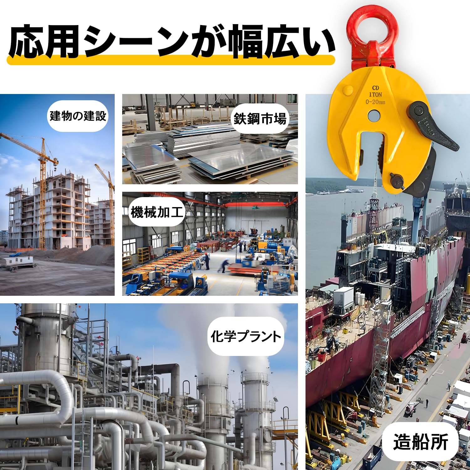 立吊りクランプ 定格容量1T 開口径0-20mm 縦吊りクランプ 荷吊り用 吊り具 吊りクランプロックハンドル式 ストッパ 垂直吊り上げおよび輸送用鋼板吊り上げクランプ説明する:材質:スチール。定格容量:約1T。クランプ範囲:約0~20mm。パッケージリスト:立吊りクランプ * 1。立吊クランプは優れた合金鋼材料で作られ、優れた靭性と強度を持ち、製品の使用過程における長期耐久性を保証する。開口径:0-20mm。同じクランプを使用して、異なる厚さのプレートを持ち上げることができます。スプリング式締め付けロック機構で確実にクランプします。鋼鉄・形鋼などの縦吊り作業。建設機械や搬送作業などの分野で幅広く活用されています。