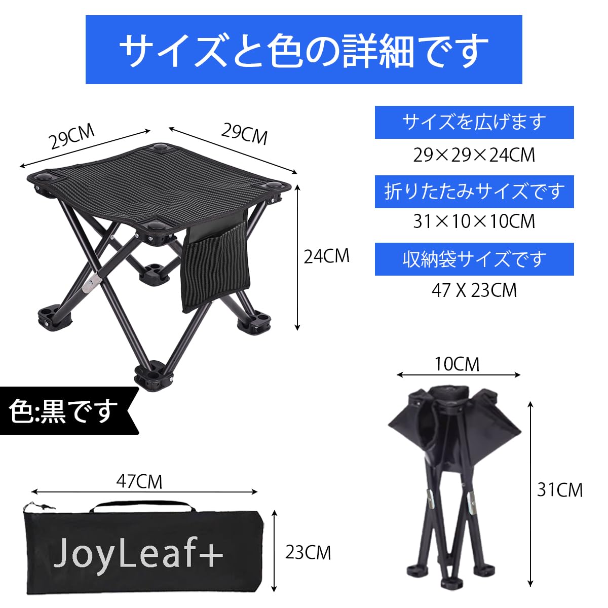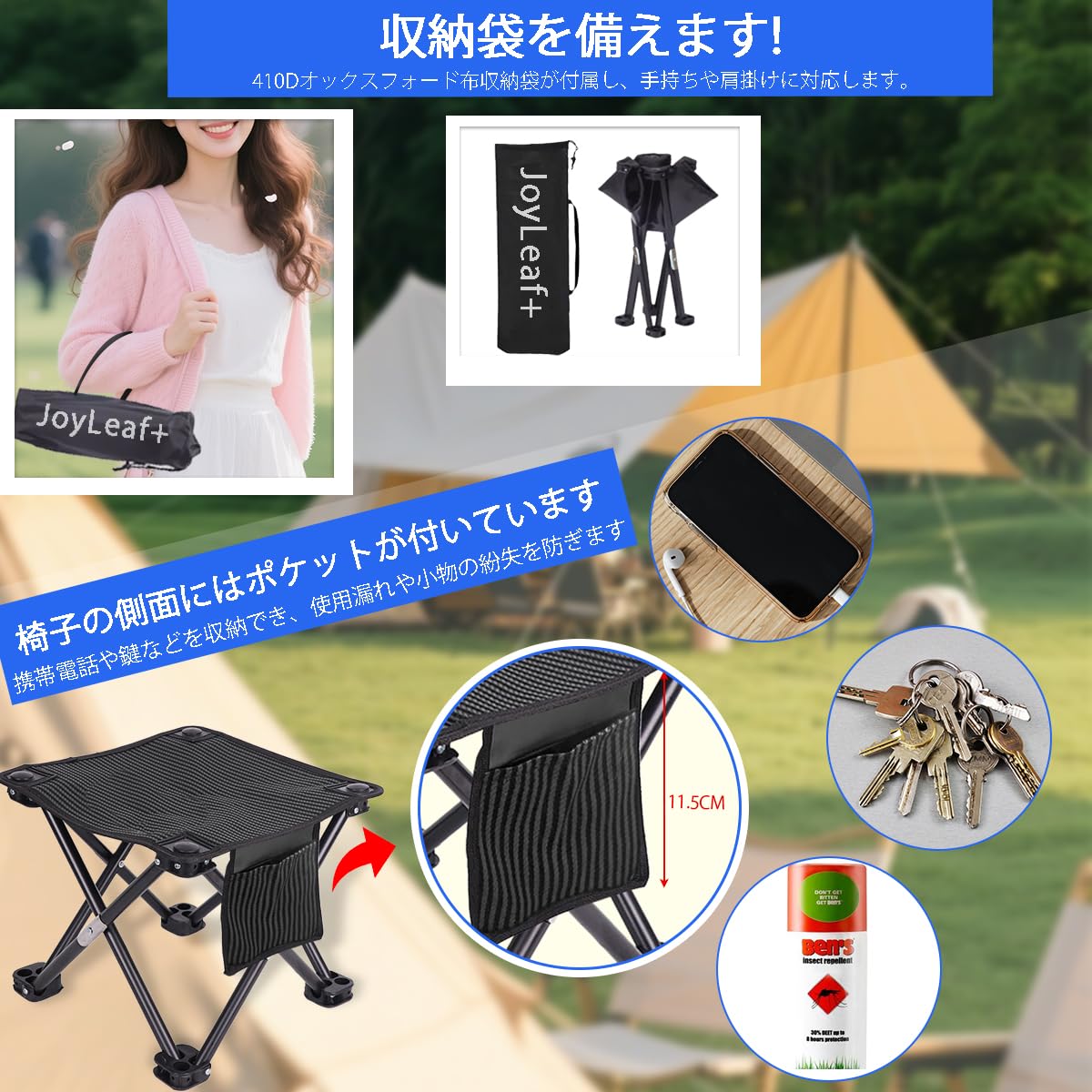 JoyLeaf+ 折りたたみ椅子 一秒で開閉可能 耐荷重150kg アウトドアチェア 収納バッグ付き 軽量・コンパクト 持ち運び便利 キャンプ バーベキュー 旅行に最適(側面小物ポケット付き) ブラック