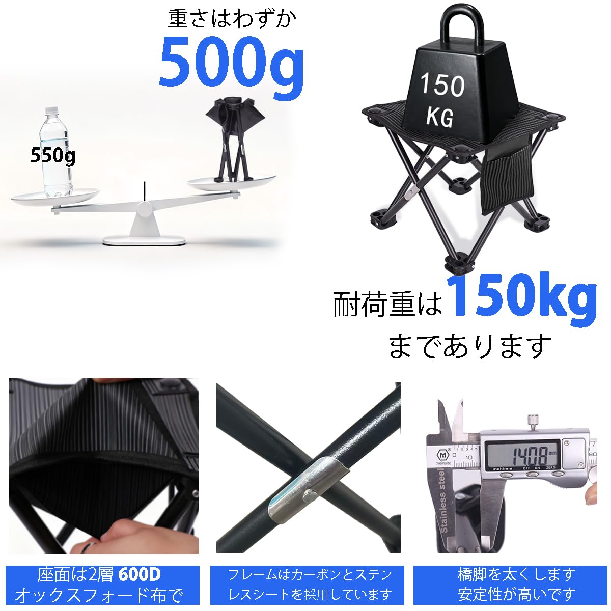 折りたたみ椅子 アウトドア チェア キャンプ 椅子 キャンプ チェア 折り畳み椅子 高強度7075アルミ合金 耐荷重180KG 超軽量 350g コンパクト 一体型 収納袋 持ち運び便利 頑固 釣り 旅行 バーベキュー 行列待ち アウトドアスポーツ登山 コンパクト キャンプ 用品 - ブラック